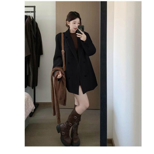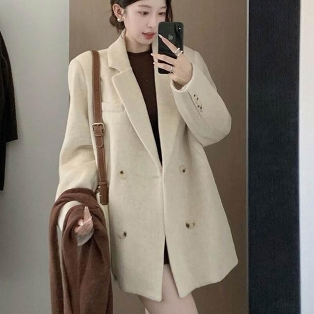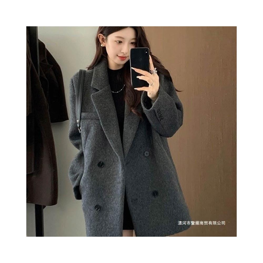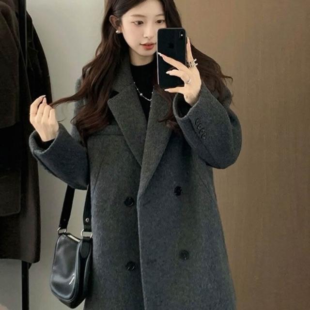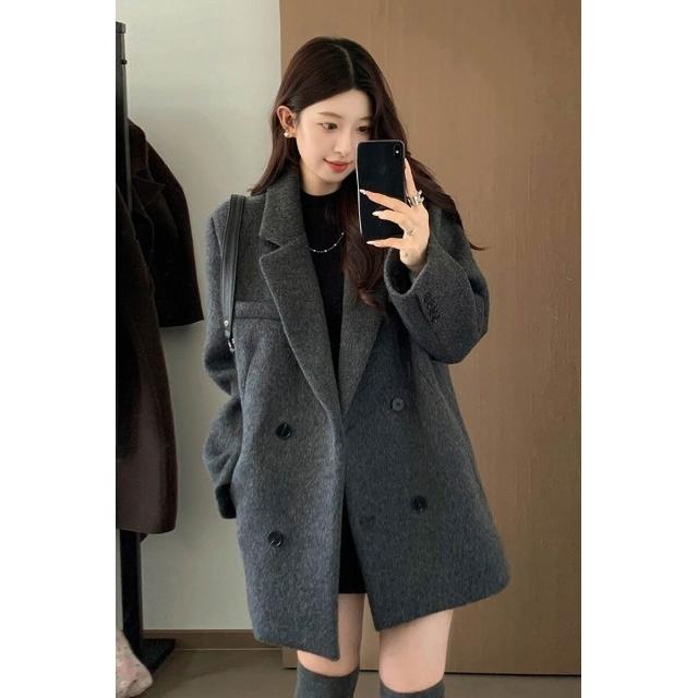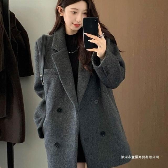 灰色西裝毛呢外套短款小個子2025新款秋冬季高級感厚羊毛呢子大衣