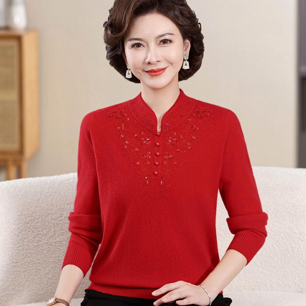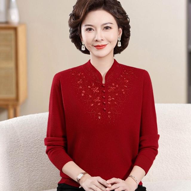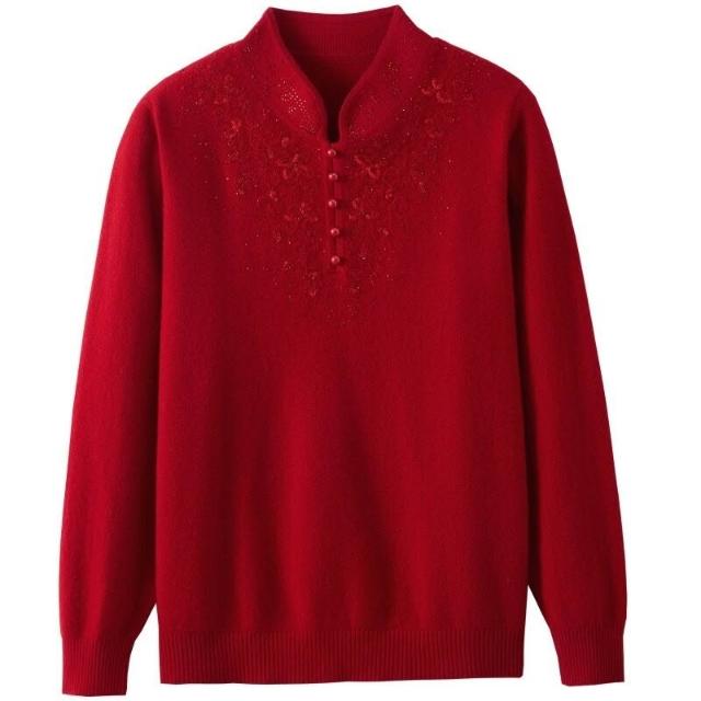 工廠直銷 媽媽冬裝100純羊毛衫女紅色本命年中老年秋季喜慶婆婆過年毛衣服