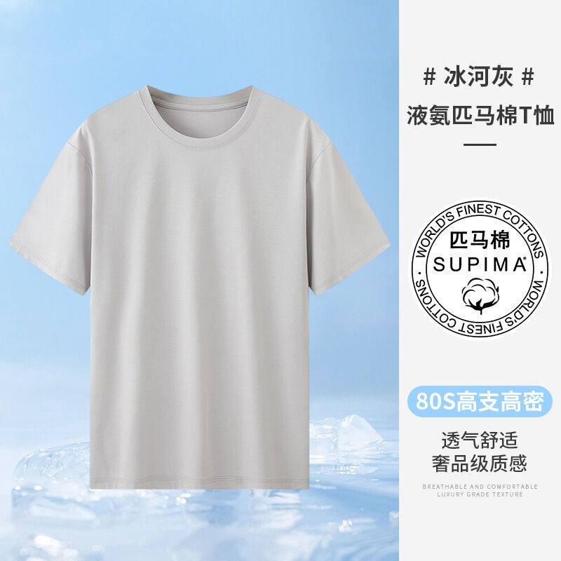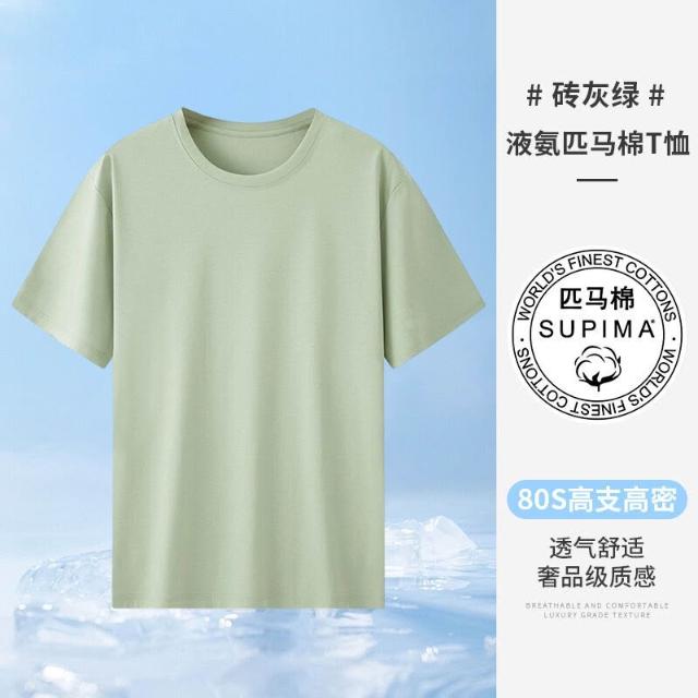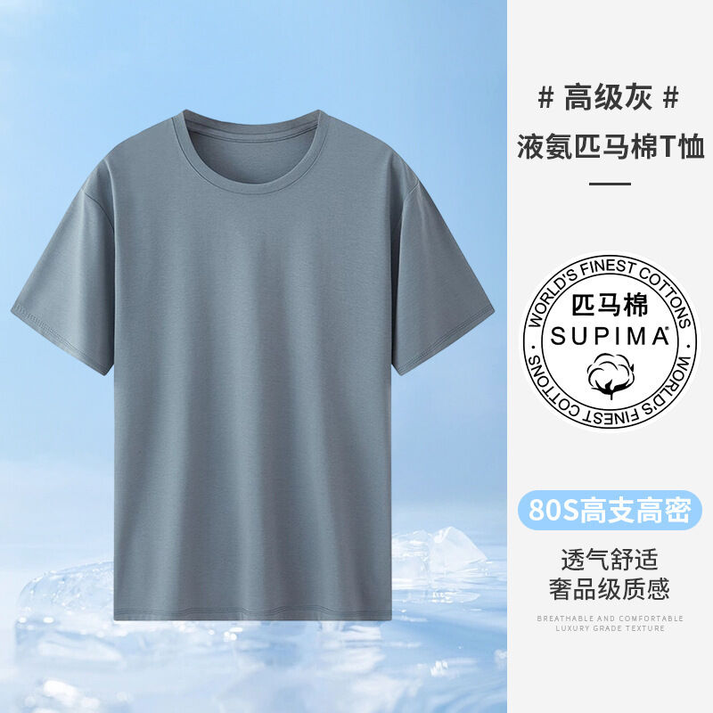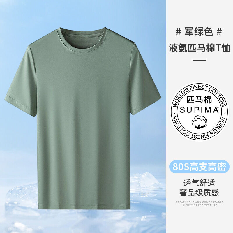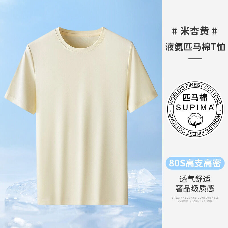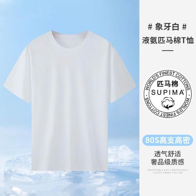 歐萊 夏季輕簿款高端匹馬棉短袖男t恤白色圓領全棉修身青年百搭打底衫