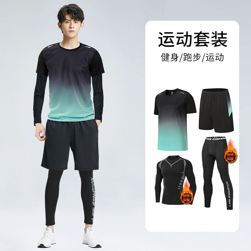 歐萊 運動套裝男健身衣服跑步裝備晨跑服騎行訓練房緊身速幹衣秋冬保暖