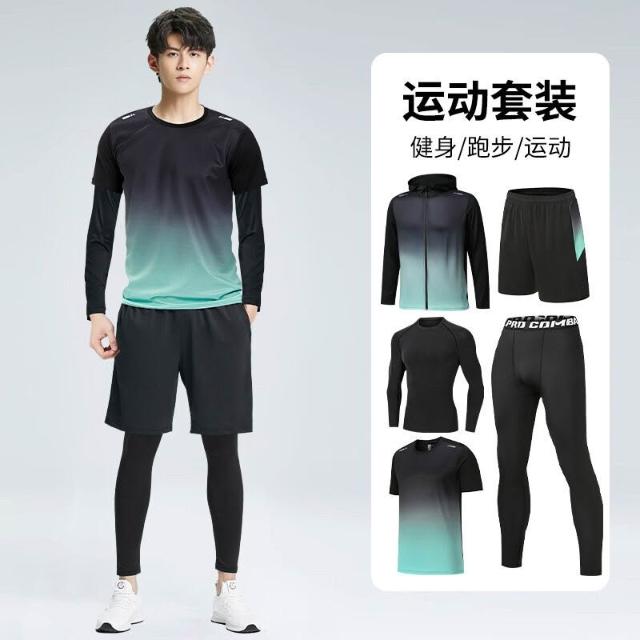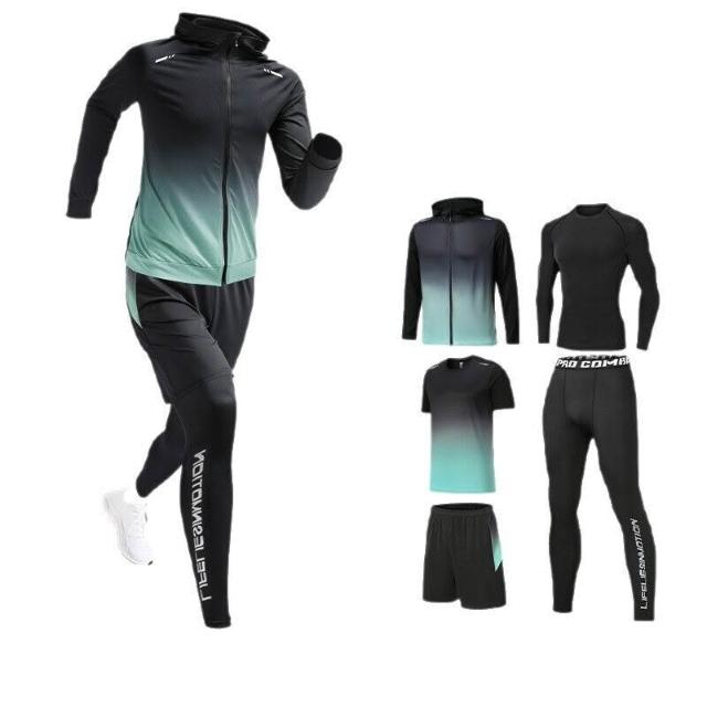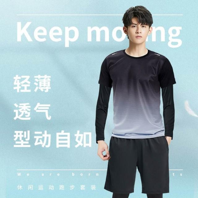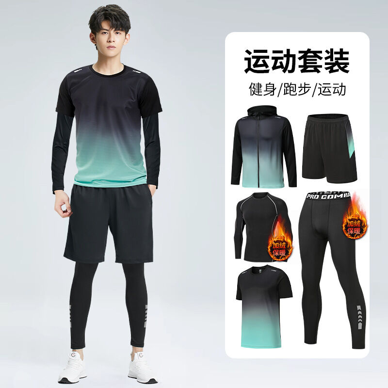 歐萊 健身衣服秋冬季跑步晨跑服騎行羽毛球服冬天訓練運動套裝男速幹衣