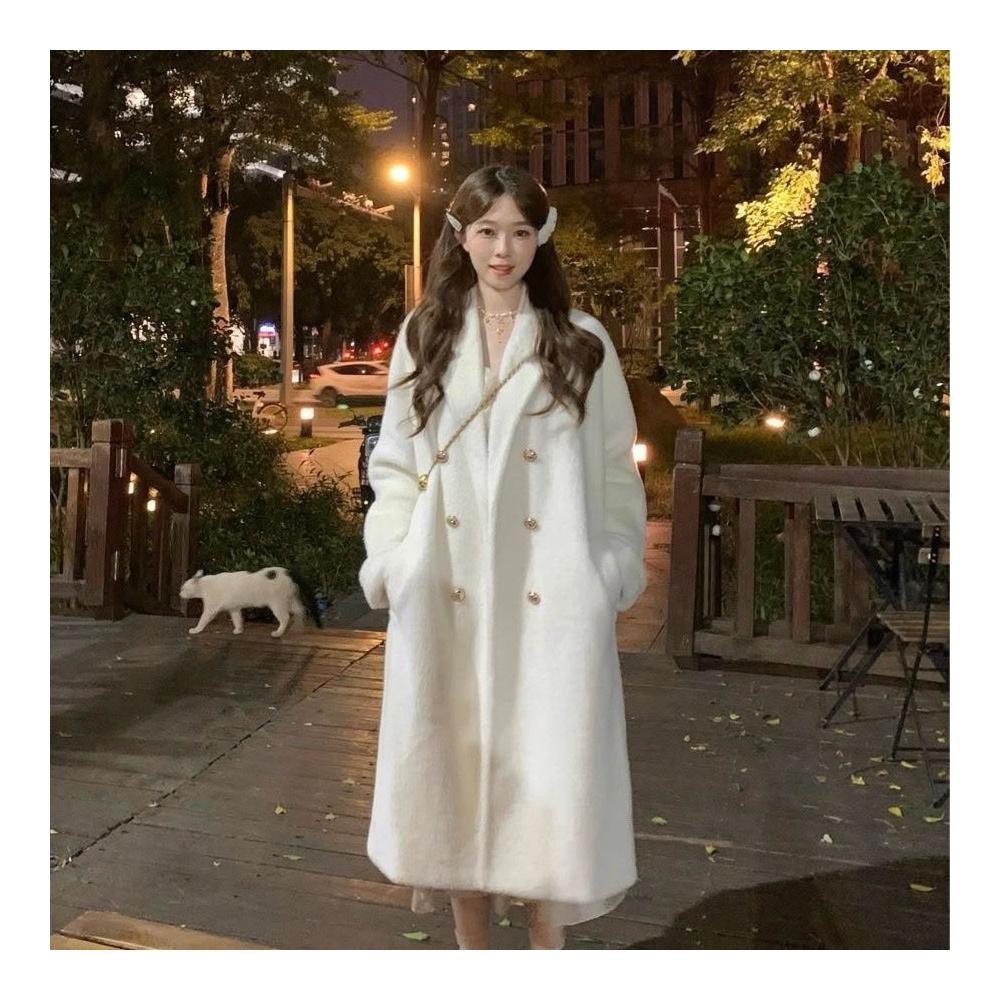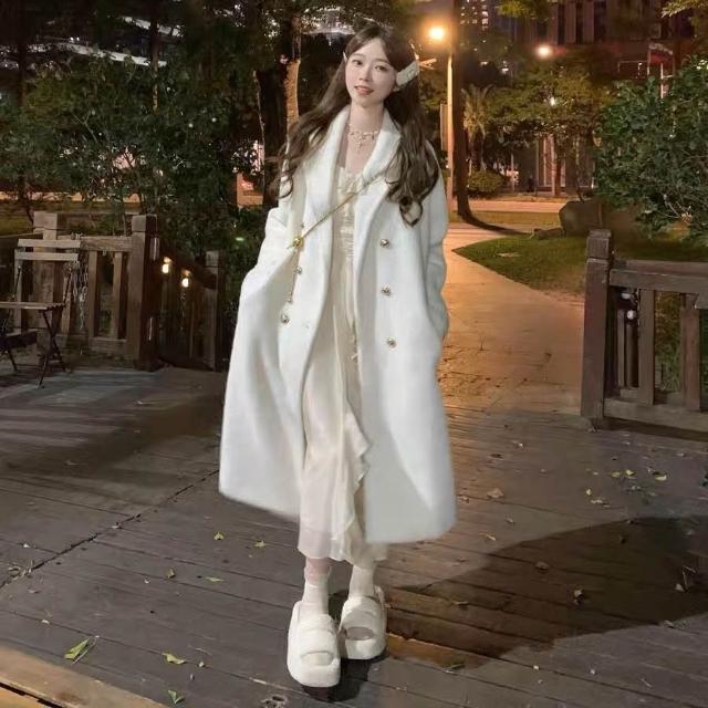 歐萊 冬季戀歌新款白色大衣秋冬韓系長款呢子外套女奶呼呼輕奢純欲風