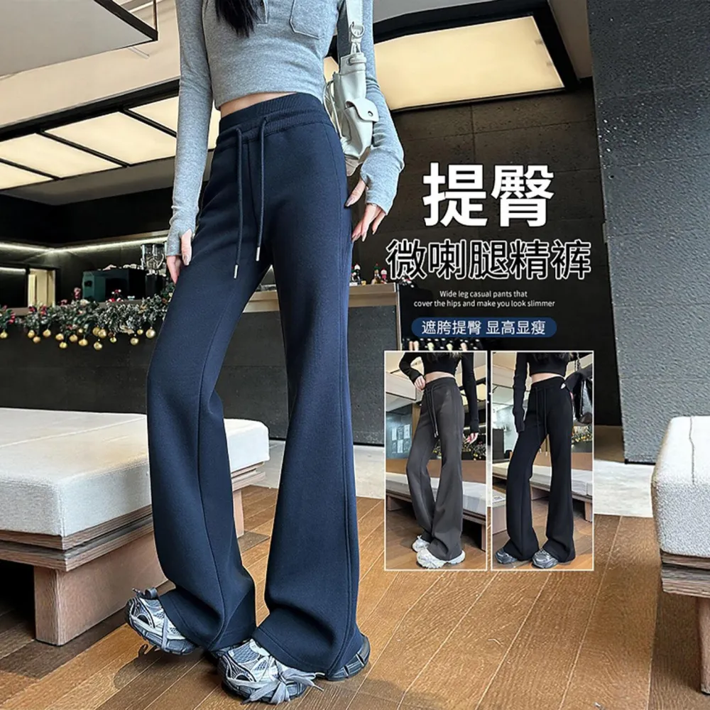藏青色微喇褲女秋冬馬蹄顯瘦小個子加絨休閑運動喇叭衛褲