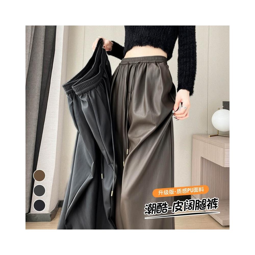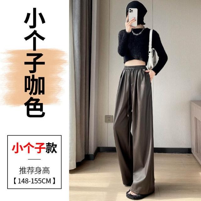 歐萊 皮褲女高腰休閑褲軟皮PU皮潮酷拖地闊腿褲子