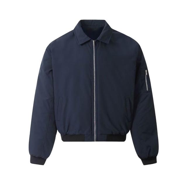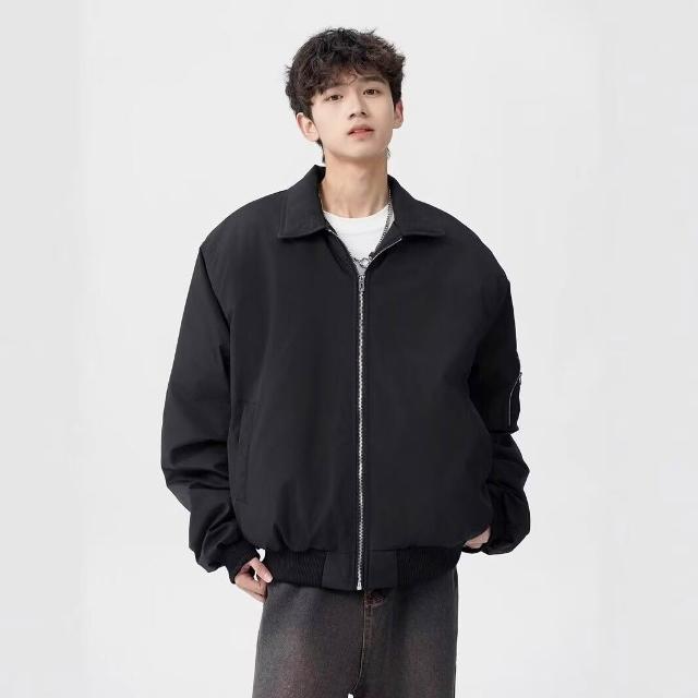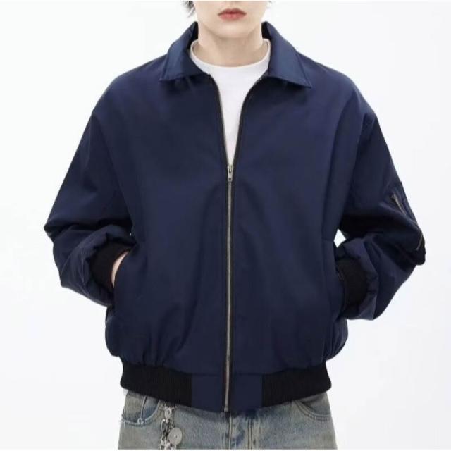 春秋美式工裝復古翻領飛行夾克休閑潮流品質款外套男藏青色