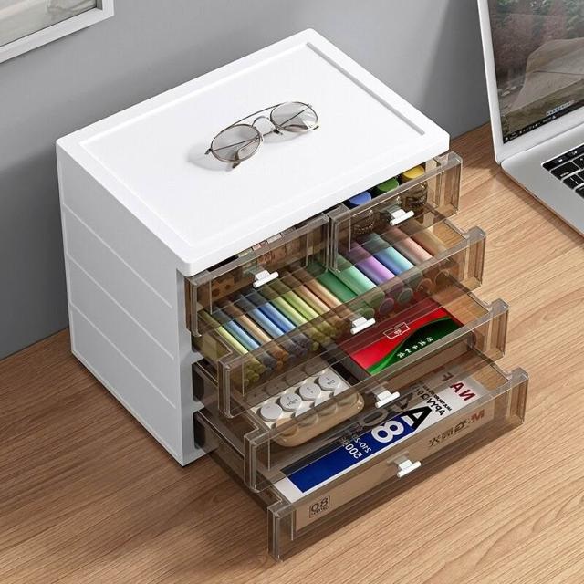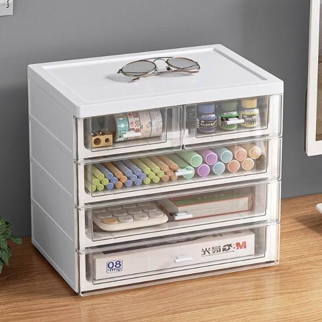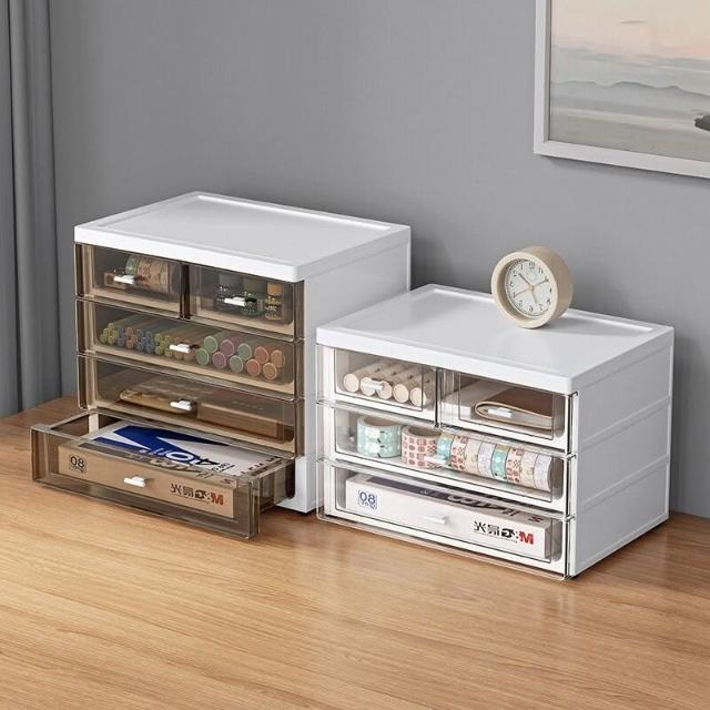 歐萊優選 抽屜式桌面收納盒學生書桌多層可疊加文件整理櫃化妝品收納置物架 實用收納