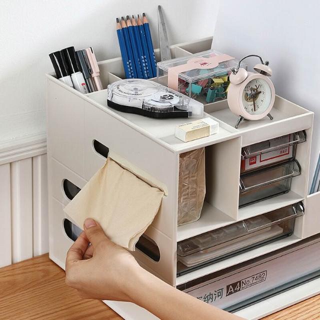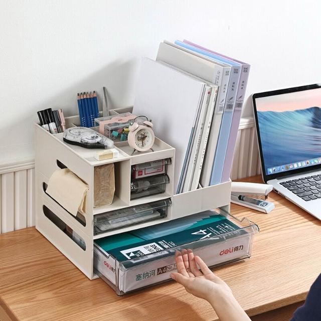歐萊優選 塑料桌面文件置物架辦公用品抽屜大容量收納盒紙巾盒書櫃收納架 實用收納