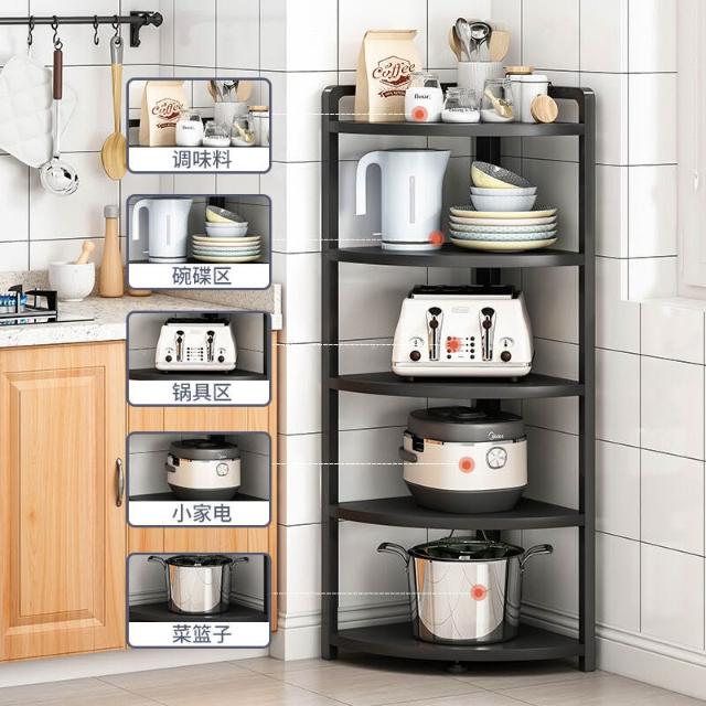 歐萊優選 廚房轉角置物架角落三角架廚具儲物架放鍋架子落地多層鍋具收納架