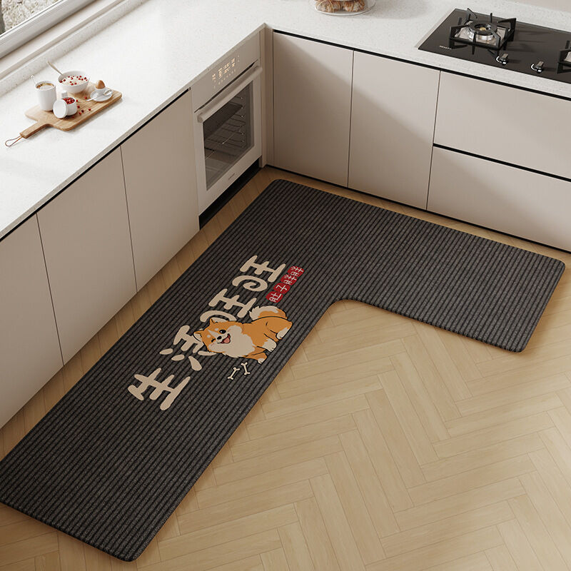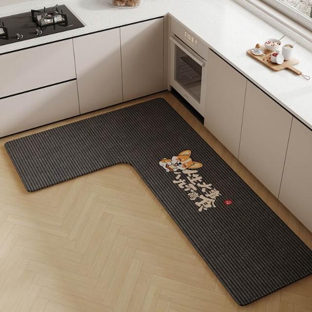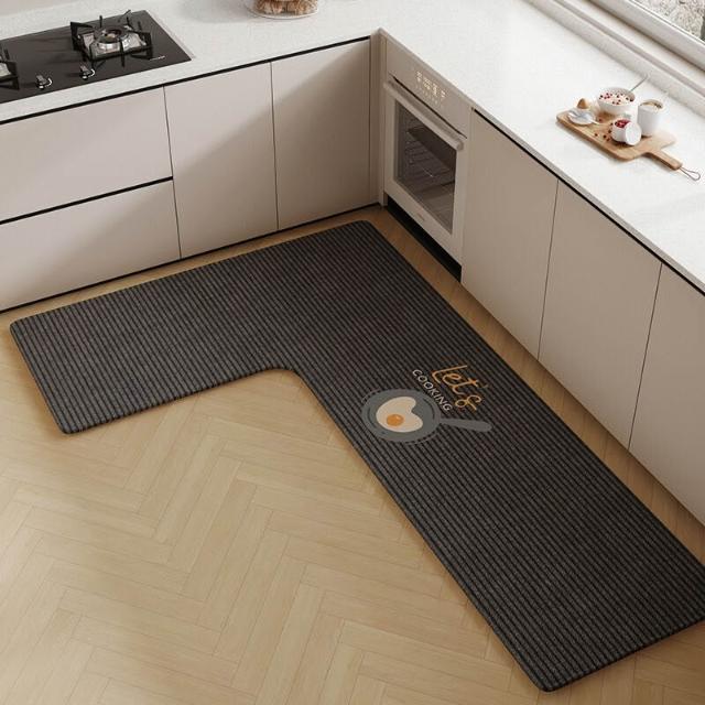 品質優選 廚房地墊L形一體吸水吸油防滑家用現代簡約7字形地毯
