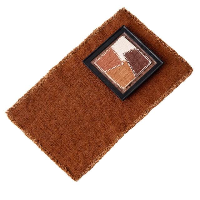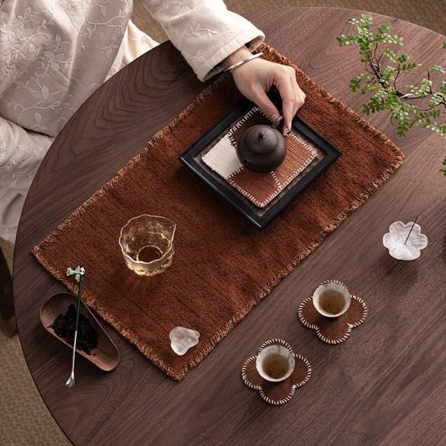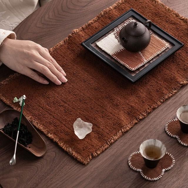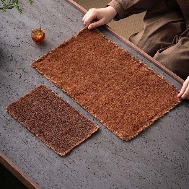 品質優選 純手工植物染粗紋柿染茶席老布純棉小茶席流蘇幹泡墊復古茶桌墊子