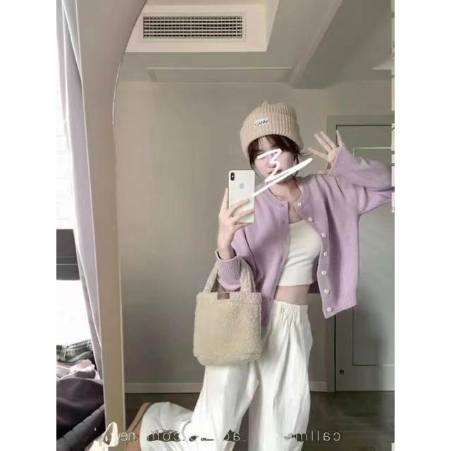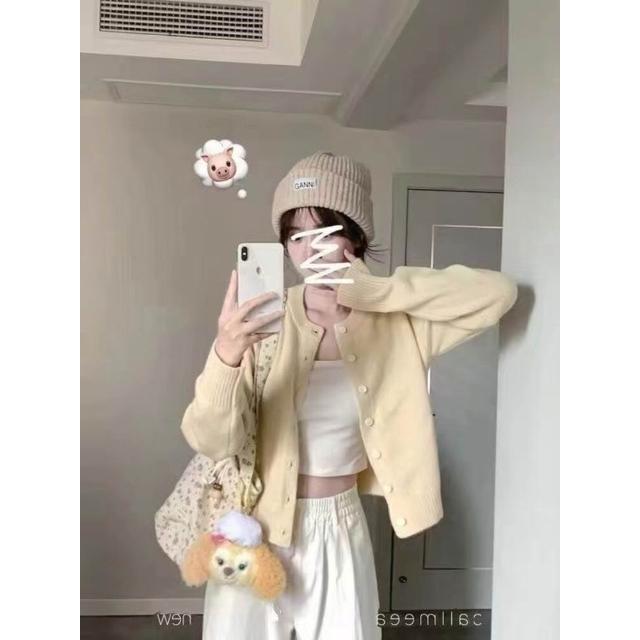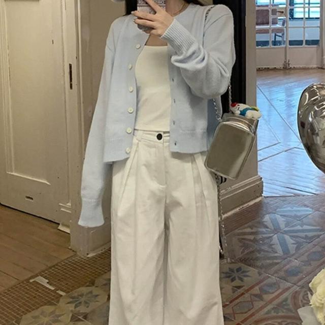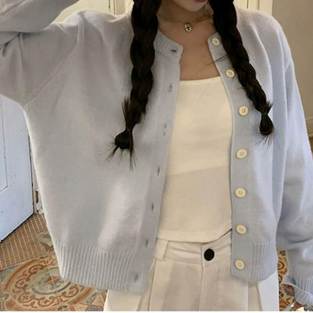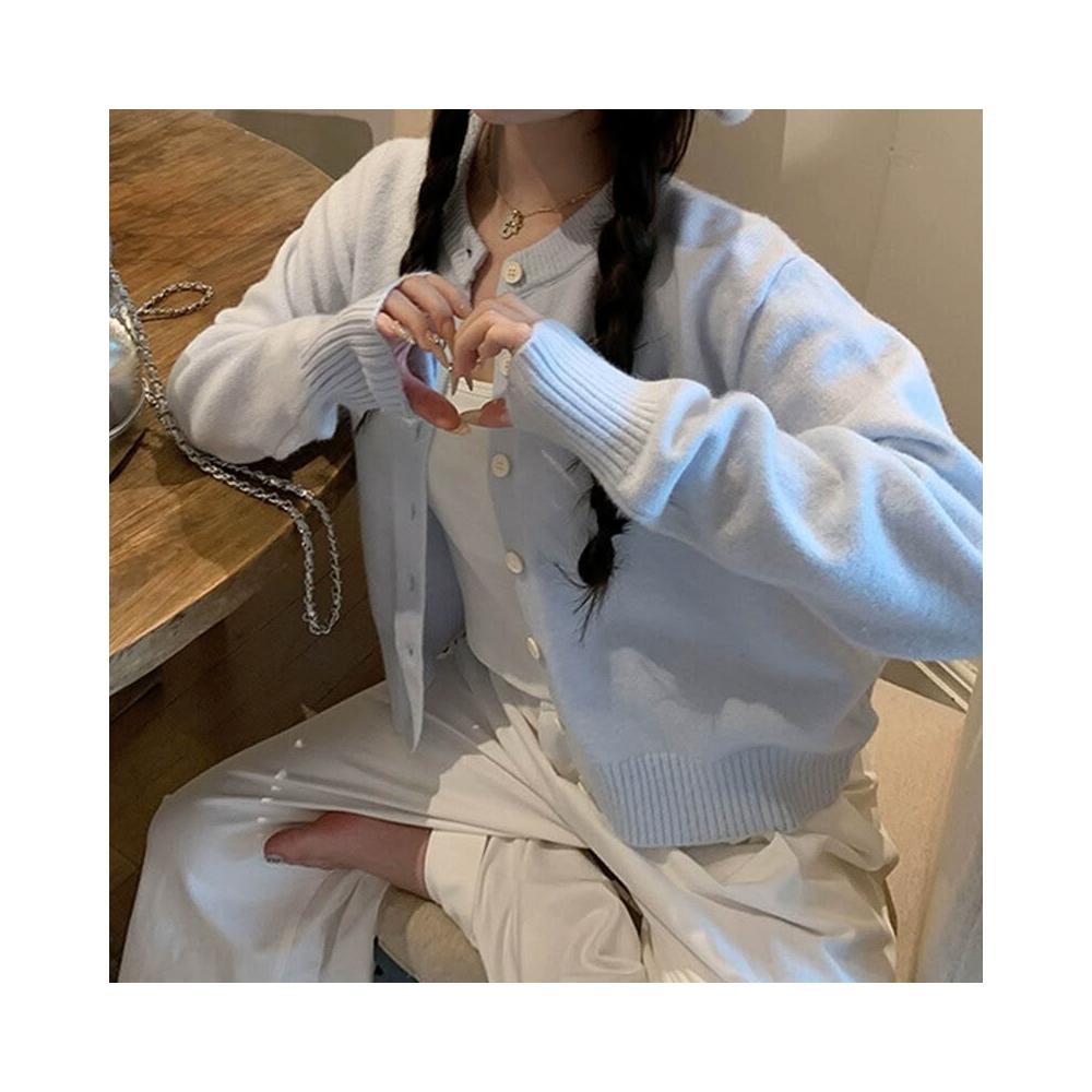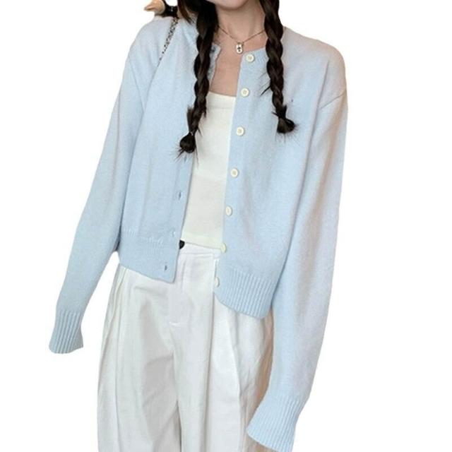 歐萊淺藍色慵懶風針織開衫外套軟糯短款長袖上衣