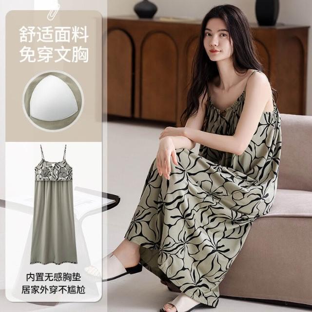 歐萊 夏季新品爆款莫代爾帶胸墊吊帶睡裙睡衣女休閑家居服