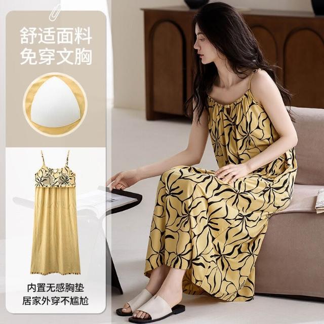 歐萊 夏季新品爆款莫代爾帶胸墊吊帶睡裙睡衣女休閑家居服