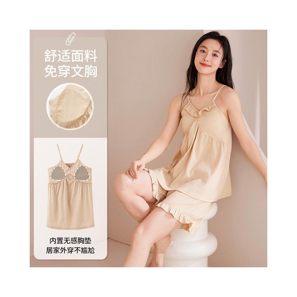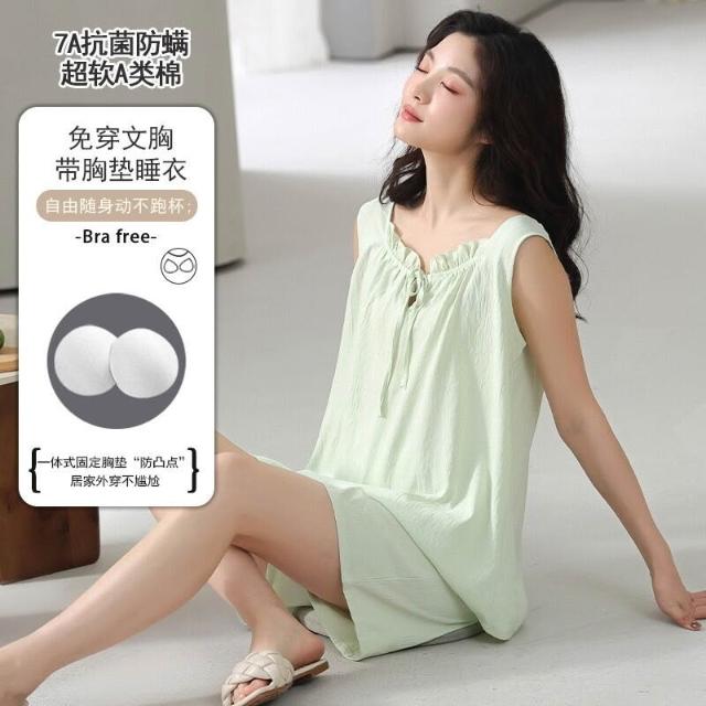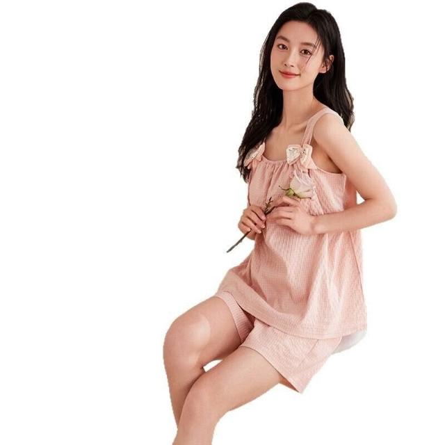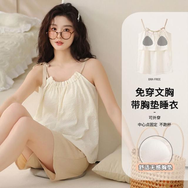 歐萊 雲朵棉純欲風帶胸墊吊帶睡衣少女夏天無袖性感薄款私房家居服套裝