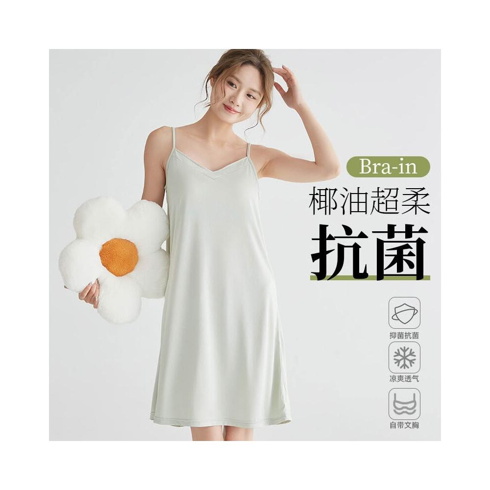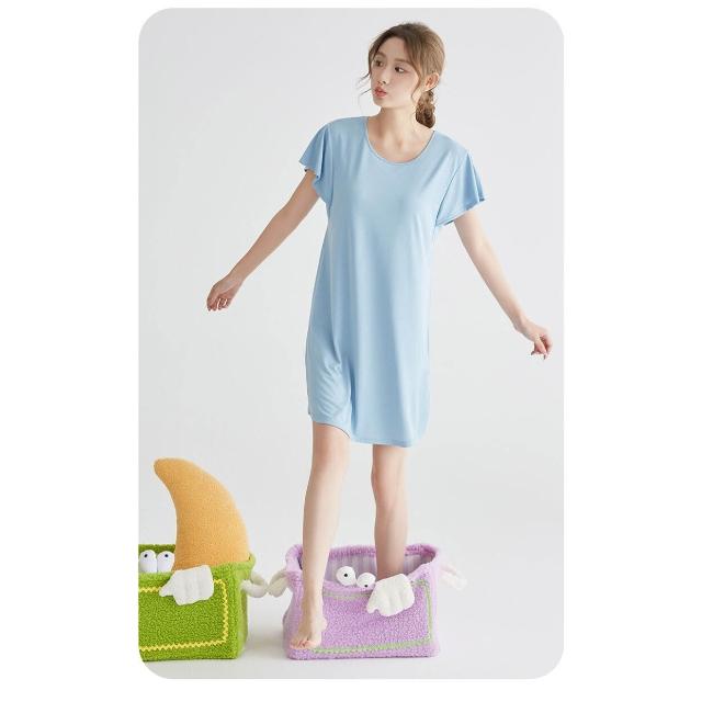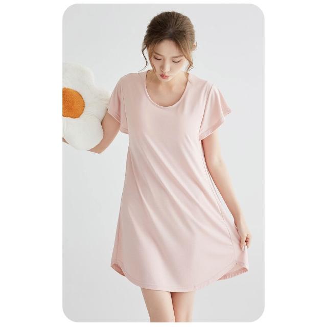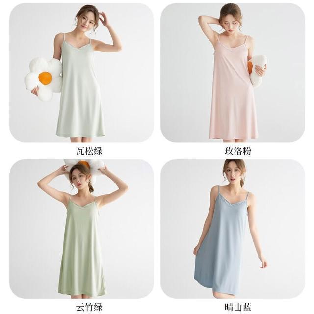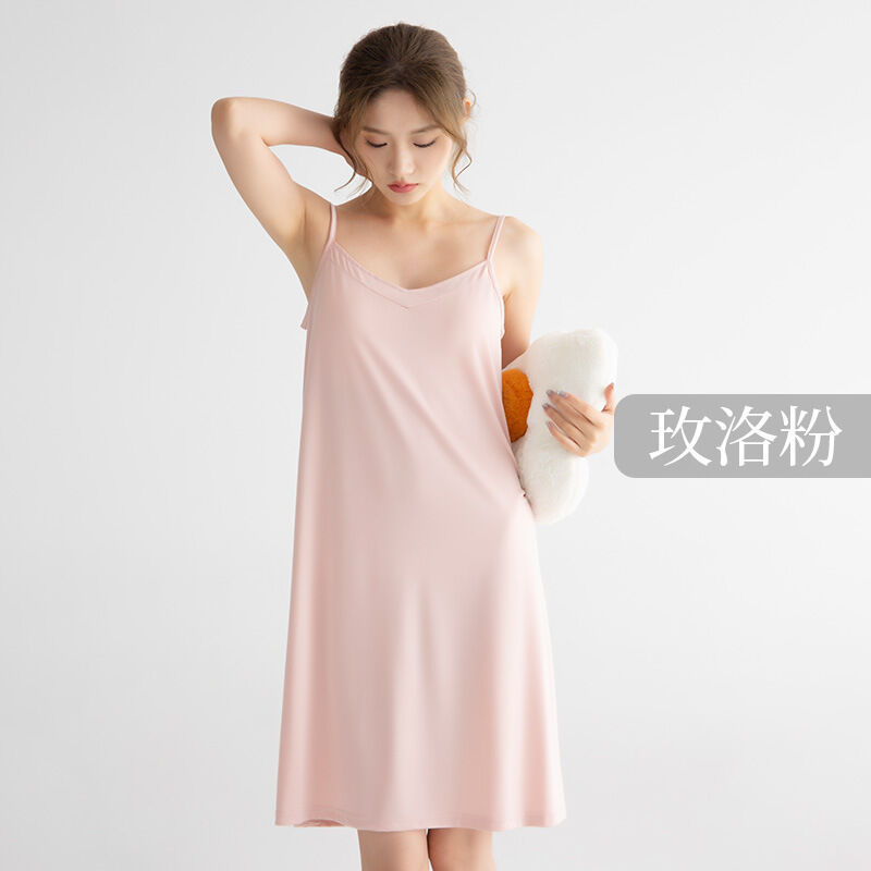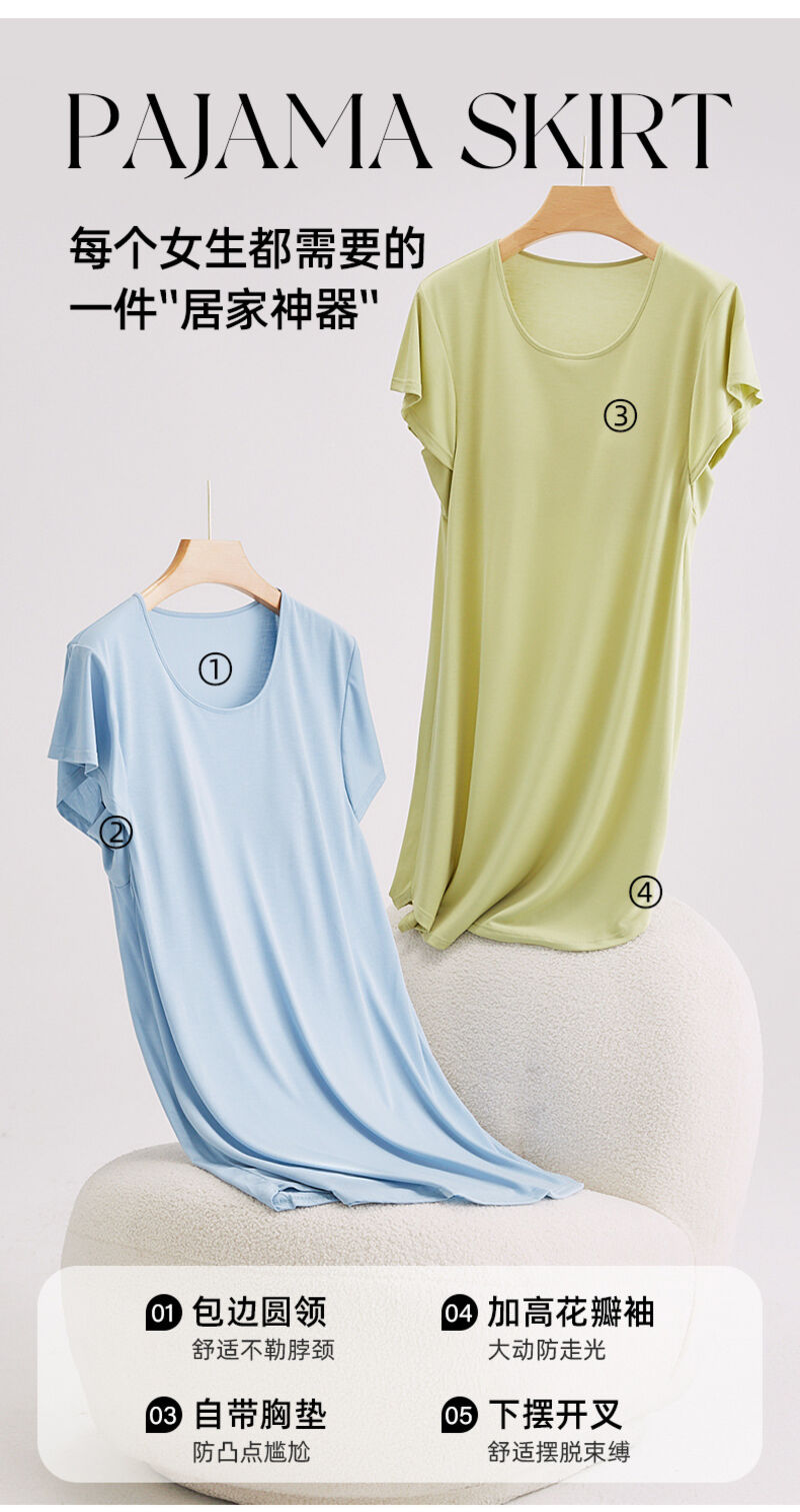 歐萊 睡衣女款夏季帶胸墊高級感家居服女士短袖睡衣裙吊帶莫代爾睡裙女
