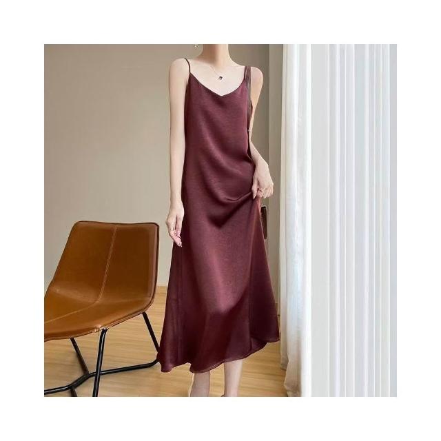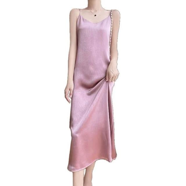 歐萊 醋酸緞面提花吊帶裙連衣裙吊帶裂紋夏季長款氣質顯瘦高級長裙