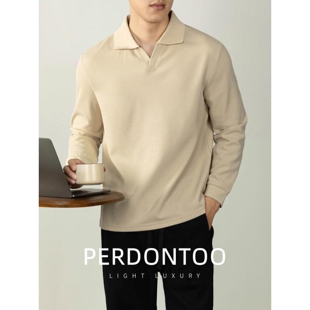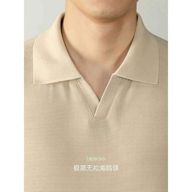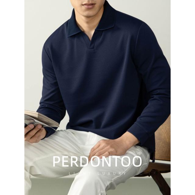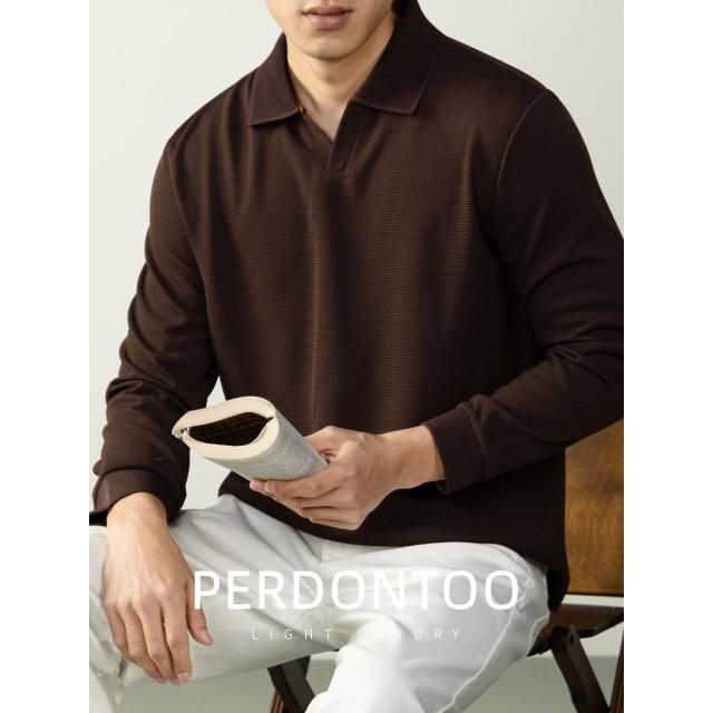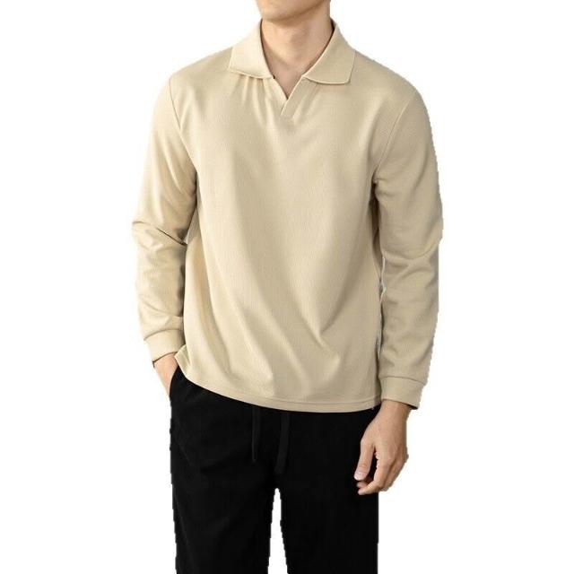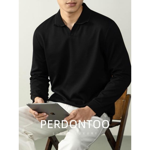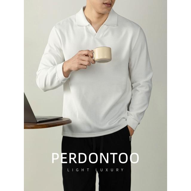 新貴row風極簡華夫格無扣海鷗領長袖T桖男通勤商務休閑POLO衫
