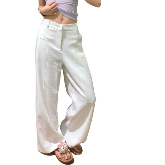 歐萊涼感透氣 白色亞麻苎麻闊腿褲女夏季薄款高腰垂感老錢風棉麻天絲西裝休閑褲