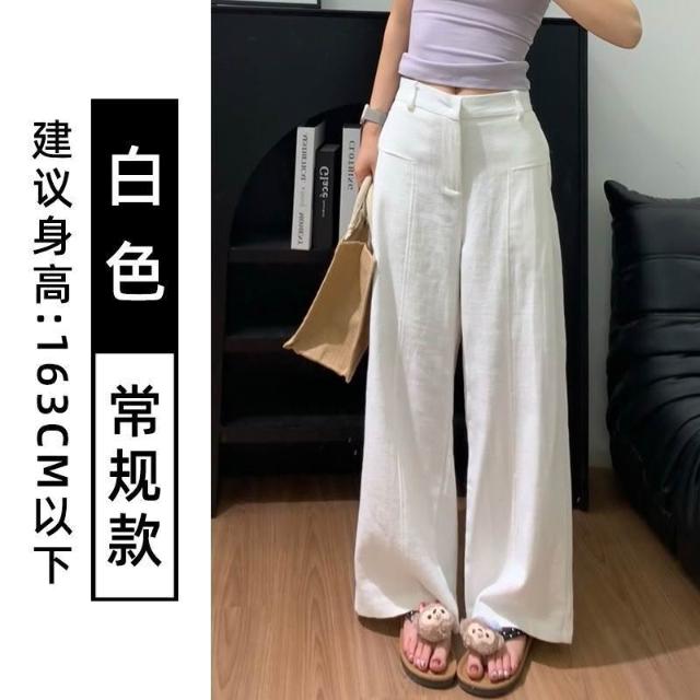 歐萊涼感透氣 白色亞麻苎麻闊腿褲女夏季薄款高腰垂感老錢風棉麻天絲西裝休閑褲