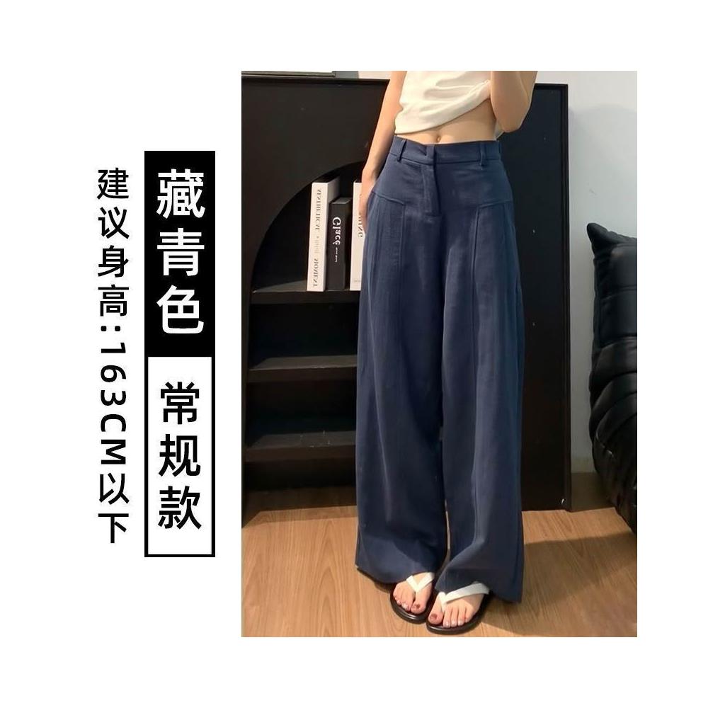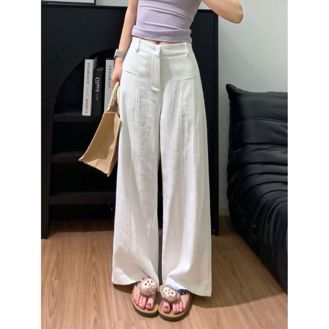 歐萊涼感透氣 白色亞麻苎麻闊腿褲女夏季薄款高腰垂感老錢風棉麻天絲西裝休閑褲