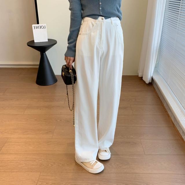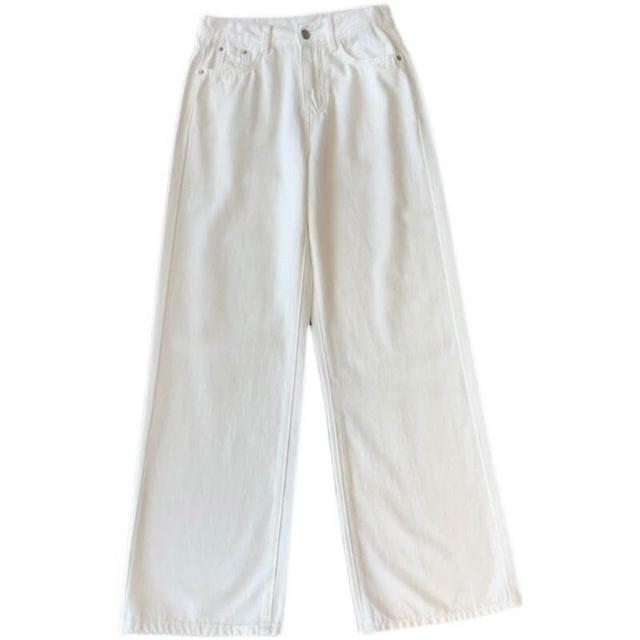 歐萊涼感透氣 !太舒服了簡約百搭高腰顯瘦白色牛仔褲女天絲長褲直筒褲顯腿長