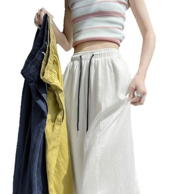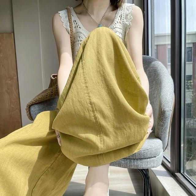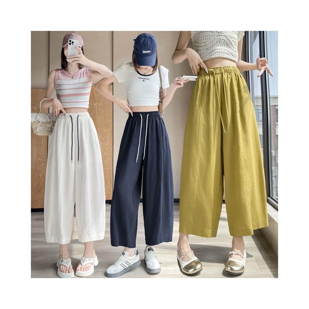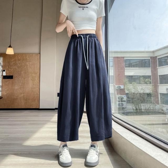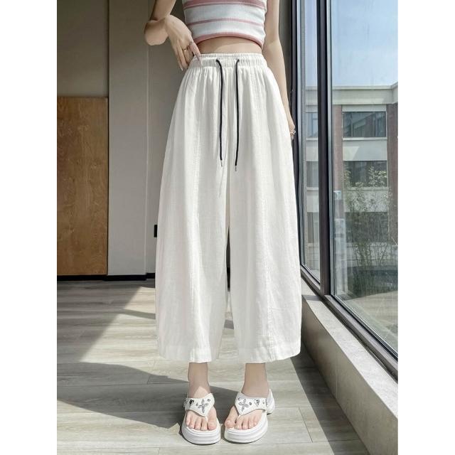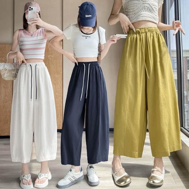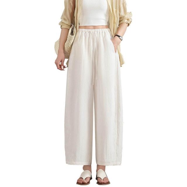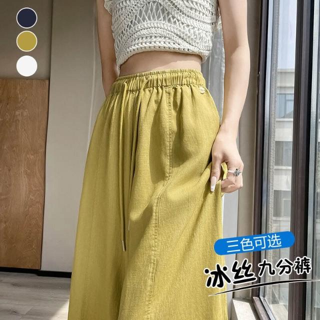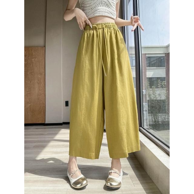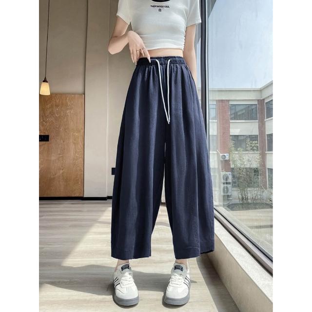 歐萊涼感透氣 天絲亞麻九分褲女士薄款冰絲棉麻闊腿褲小個子百搭垂感遮肉休閑褲