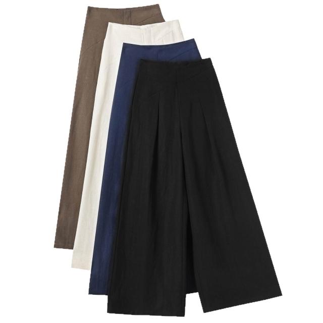 歐萊涼感透氣 天絲亞麻褲女寬松闊腿褲萊賽爾高腰顯瘦休閑拖地褲子