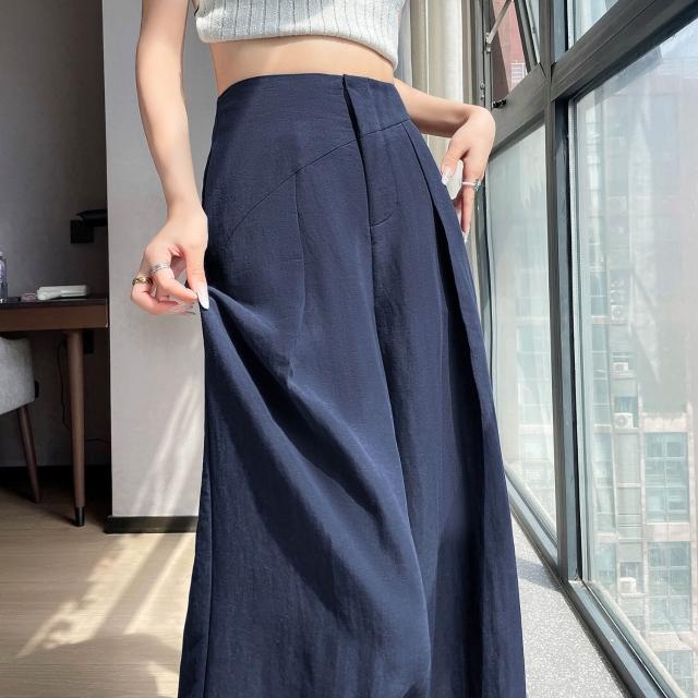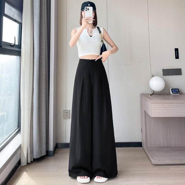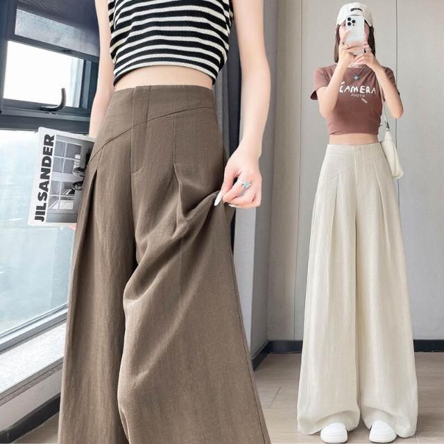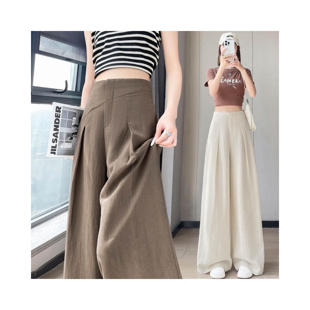 歐萊涼感透氣 天絲亞麻褲女寬松闊腿褲萊賽爾高腰顯瘦休閑拖地褲子
