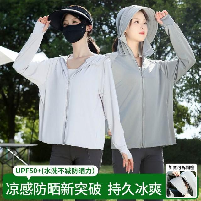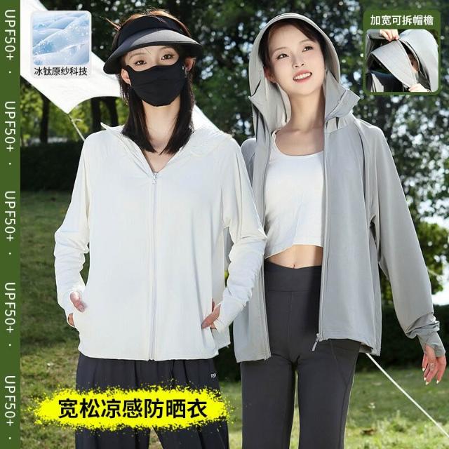 歐萊涼感透氣 夏季防曬衣女冰钛原紗防紫外線upf50+防曬服寬松薄款防曬外套女