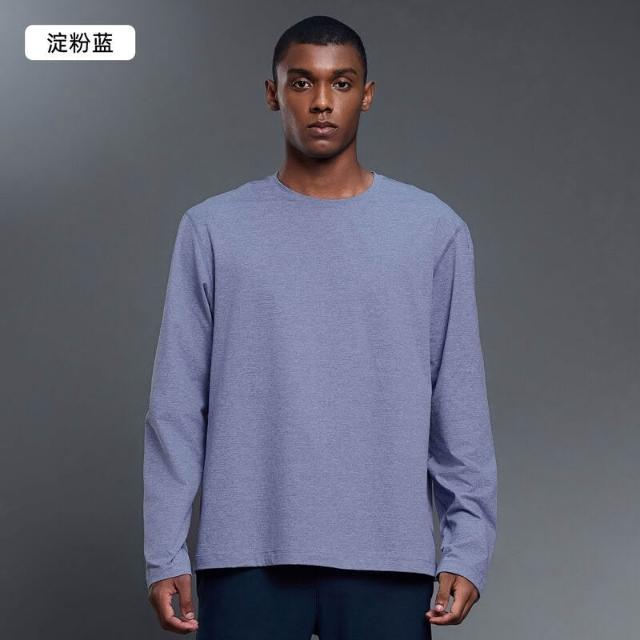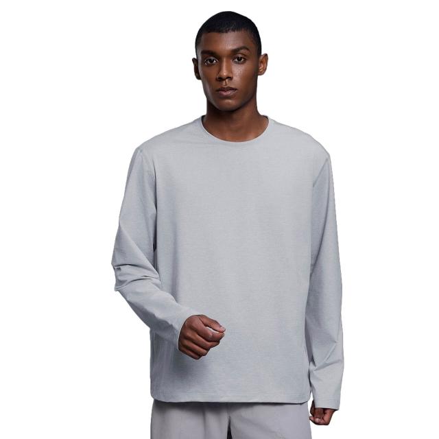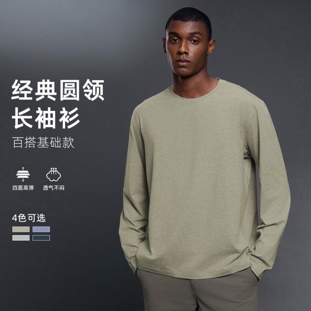 透氣 純色圓領長袖打底衫秋季薄款吸濕透氣寬松休閑運動t恤男
