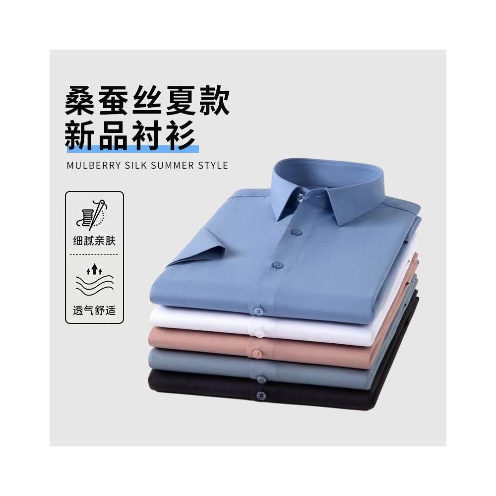 透氣 春夏季新桑蠶絲短袖襯衫男士彈力襯衣中青年純色真絲夏季新款