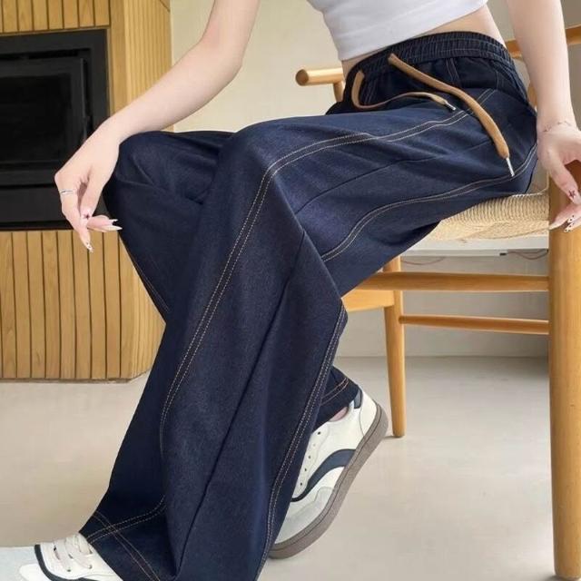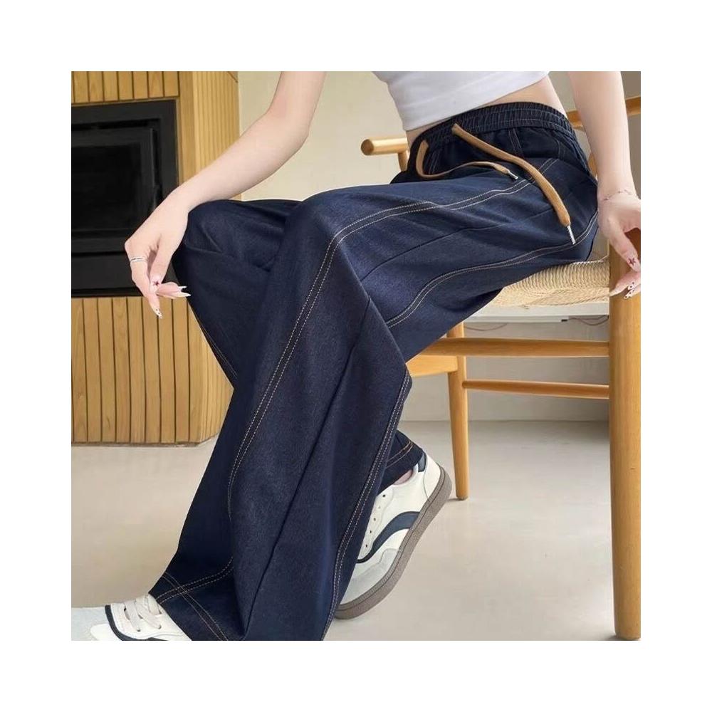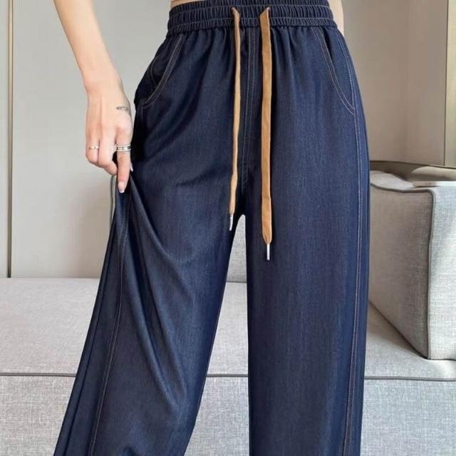 薄款天絲牛仔褲 夏季薄款 丹寧藍 高腰垂感 休閑冰絲闊腿褲 窄版直筒