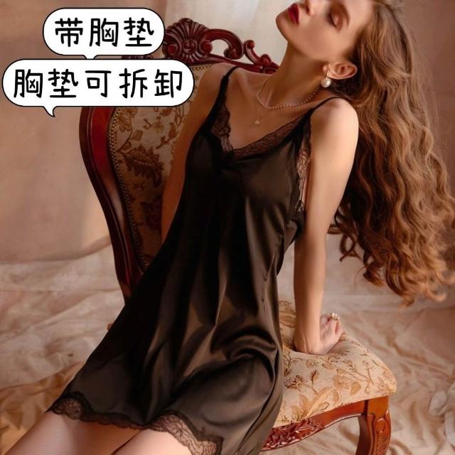 新款性感露背睡衣 女夏天蕾絲純欲風 春秋款 冰絲吊帶睡裙 女