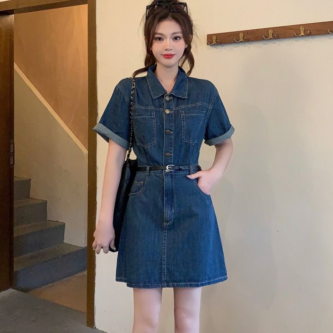 大碼女裝 胖mm牛仔連衣裙 女2026夏季 新款裙子 微胖女生 遮肚顯瘦 短款/長款裙子