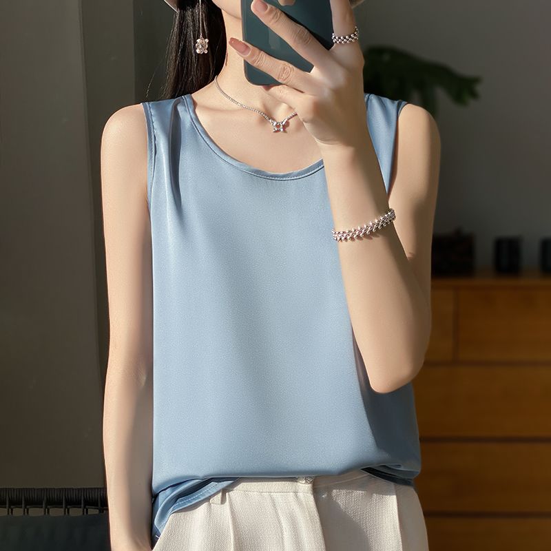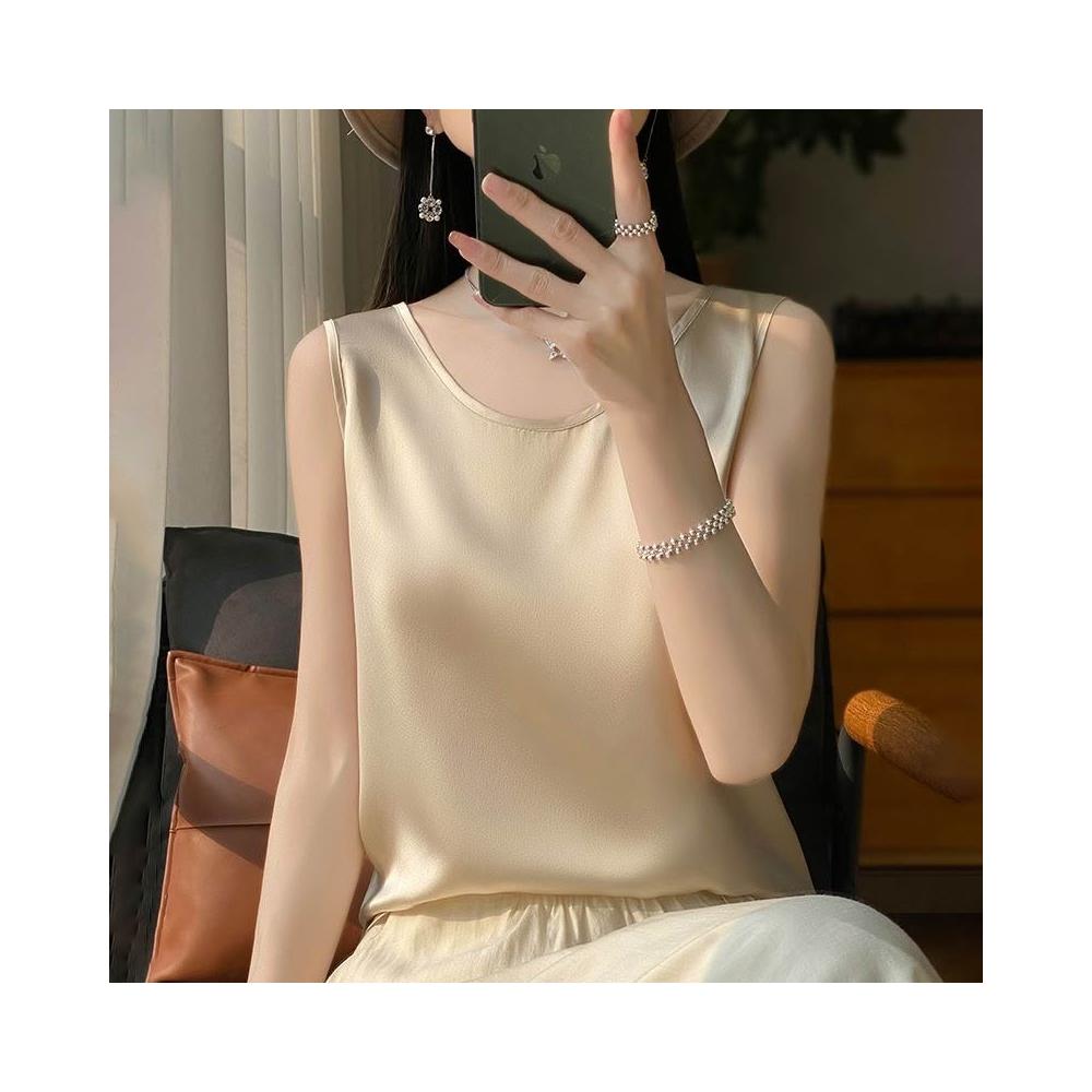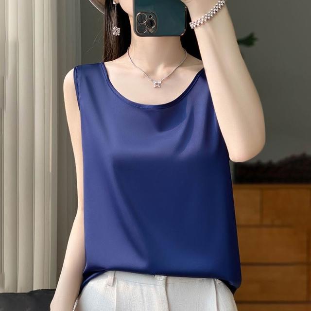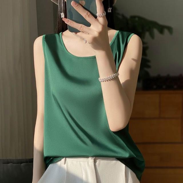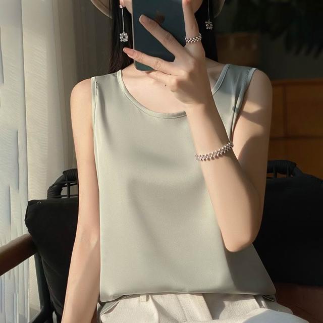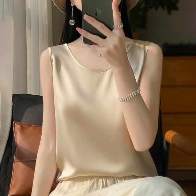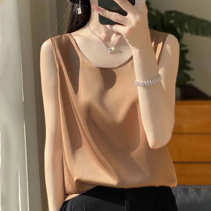 冰絲吊帶 女夏季圓領背心 寬松遮肚 內搭打底衫 緞面百搭 配西裝