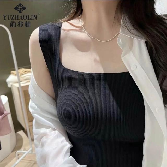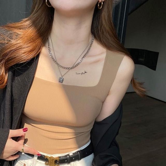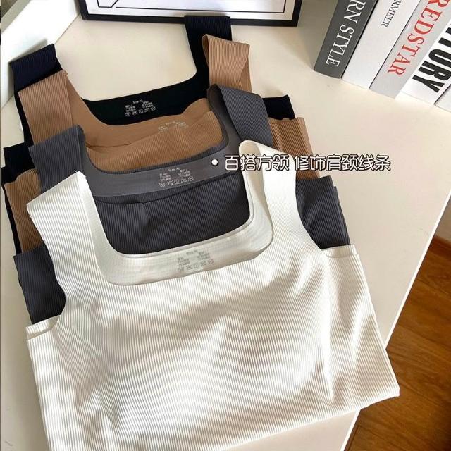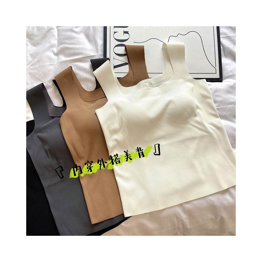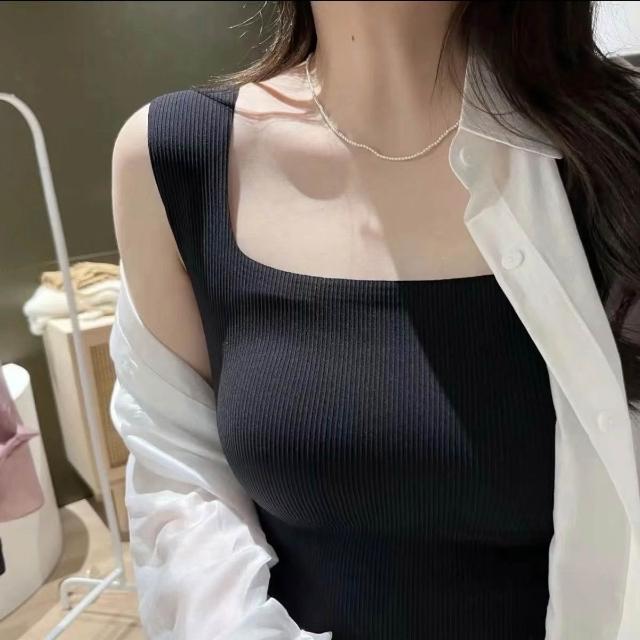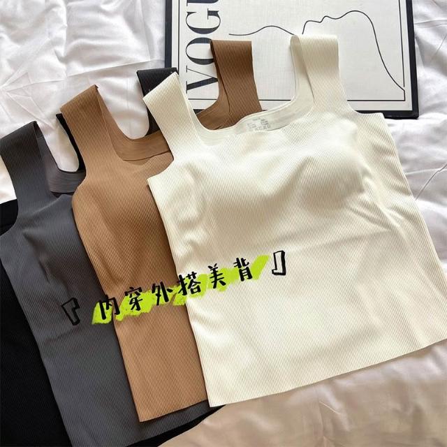 冰絲夏季 寬肩帶小背心 女方領無痕 吊帶一體式 帶胸墊 外穿 內搭打底衣