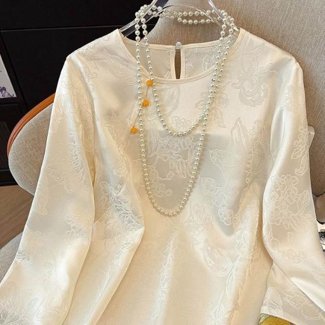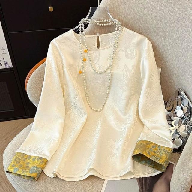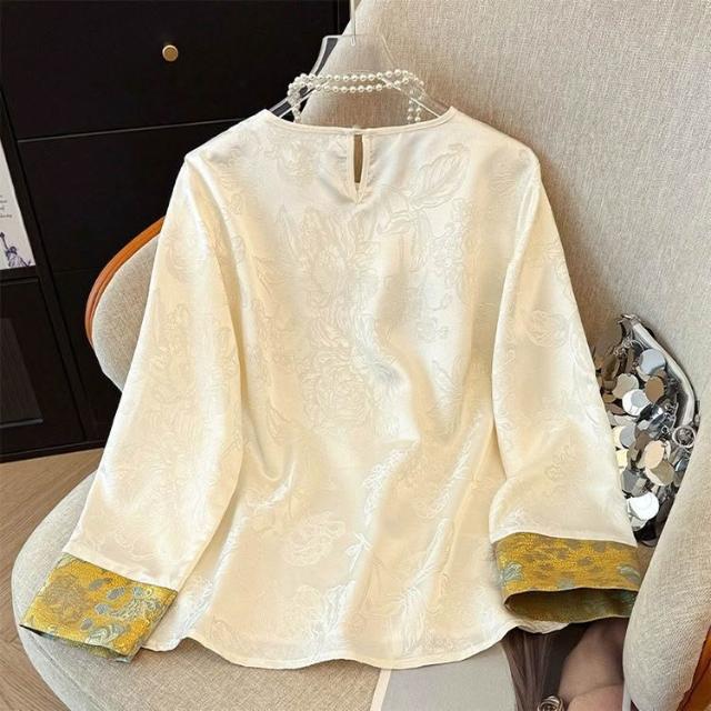 春季新中式國風提花圓領小衫女2026新款禅意茶服新中式襯衫上衣