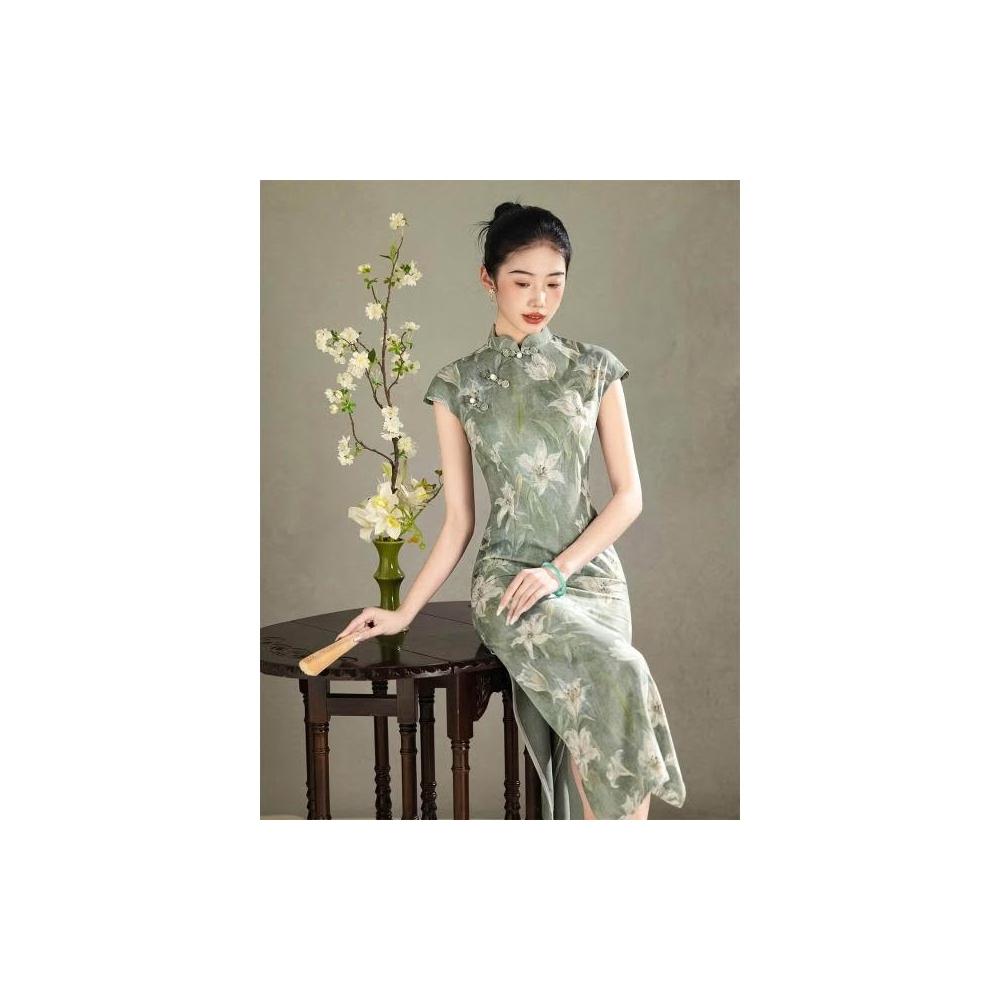 旗袍2026新款改良年輕女夏季新中式國風連衣裙復古民國老上海綠色