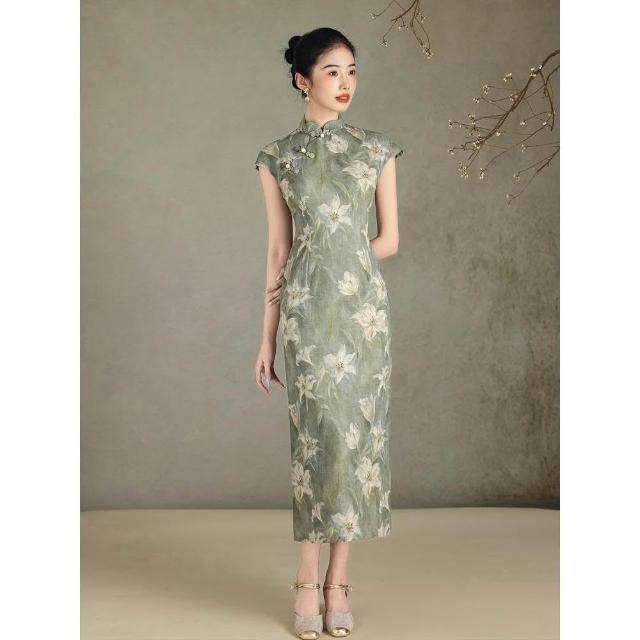 旗袍2026新款改良年輕女夏季新中式國風連衣裙復古民國老上海綠色