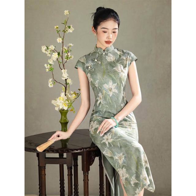 旗袍2026新款改良年輕女夏季新中式國風連衣裙復古民國老上海綠色