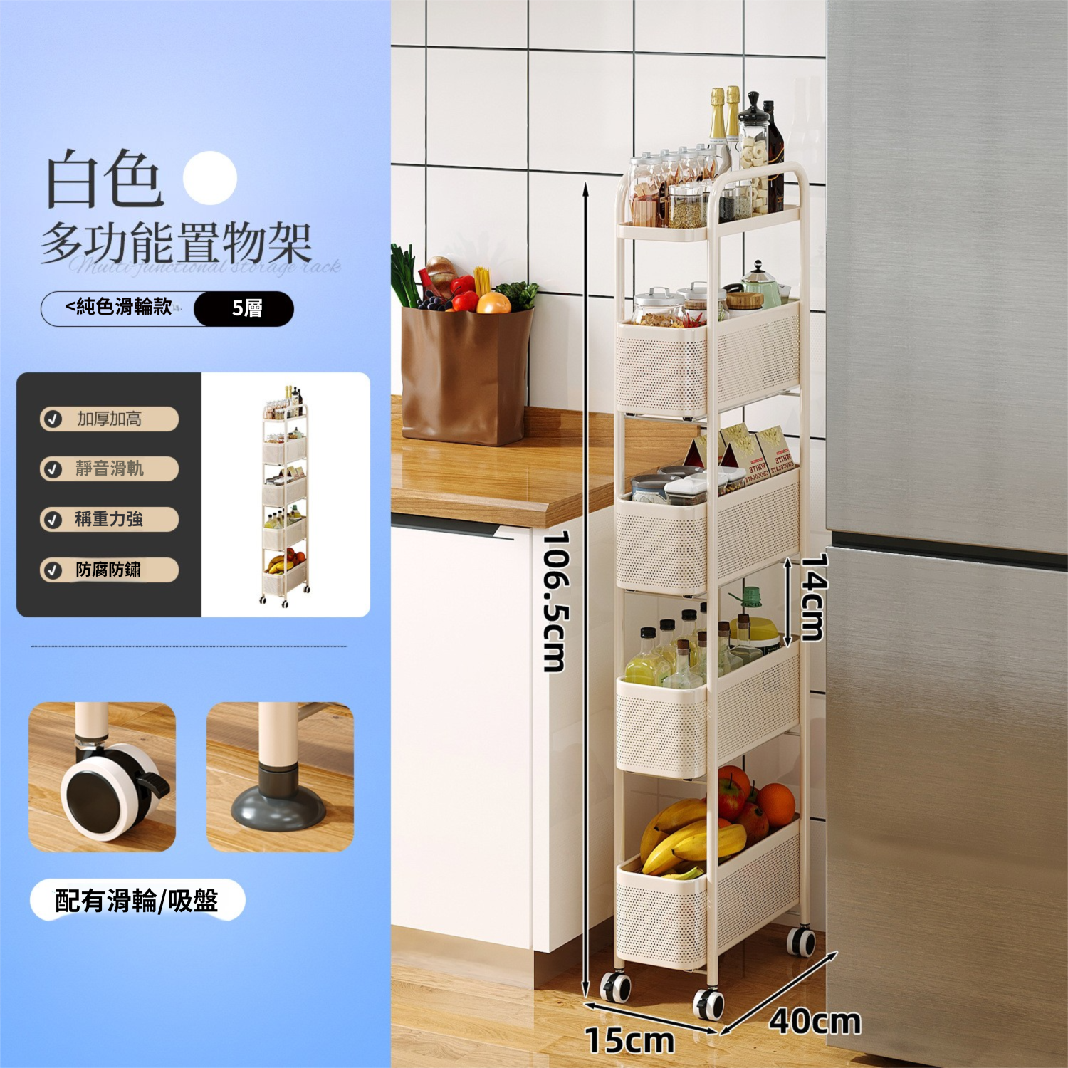 免運免稅 窄縫收納 廚房落地置物架多層縫隙家用衛生間廁所可移動冰箱側夾縫小推車