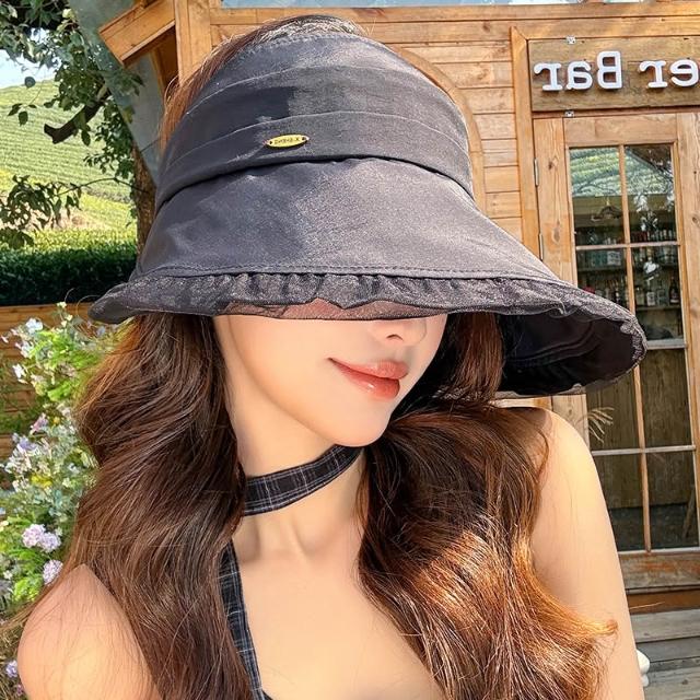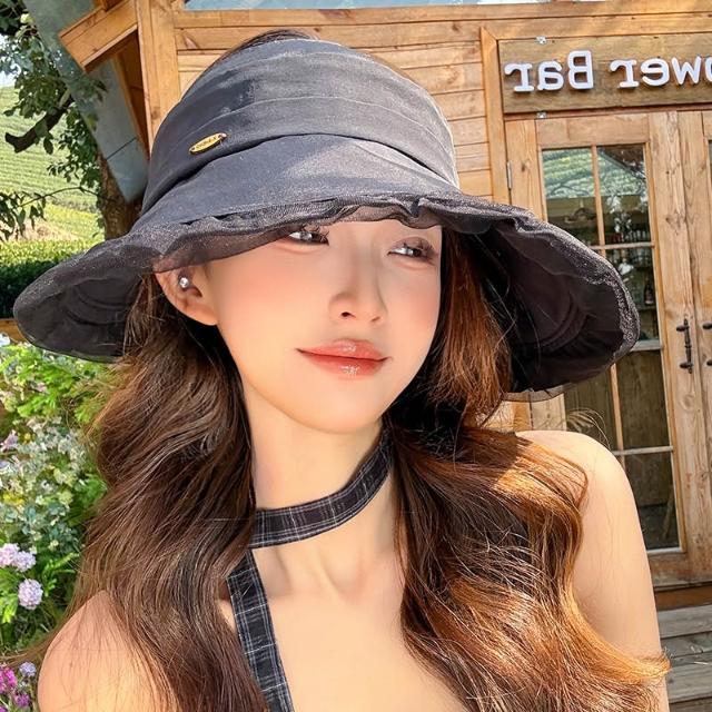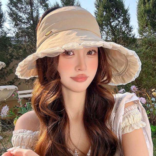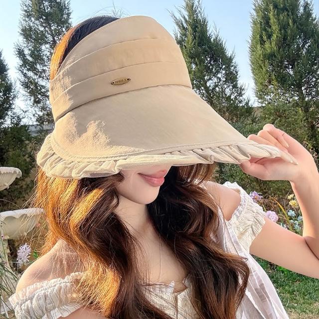 歐萊 日系甜美可愛大檐防曬帽海邊出遊防紫外線太陽帽可紮馬尾空頂帽女