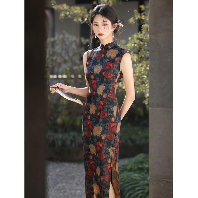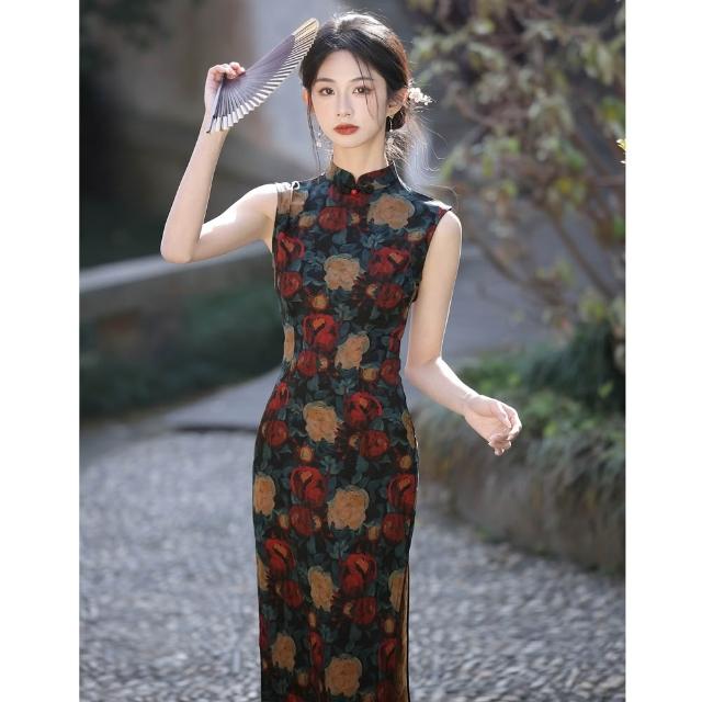 新中式無袖旗袍年輕款 貝佳斯高級感優雅國風旗袍長款改良連衣裙