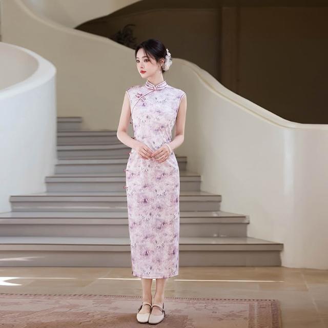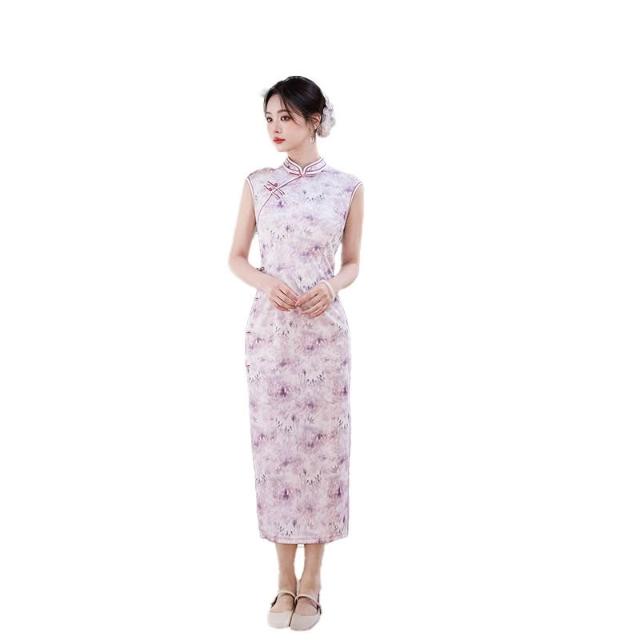 紫色無袖旗袍2026新款夏季新中式改良年輕款少女高級感連衣裙絕美
