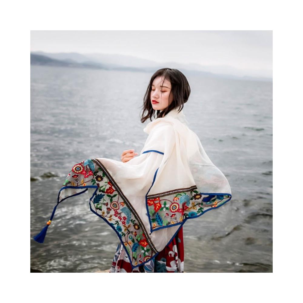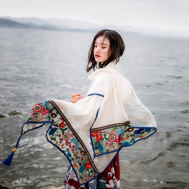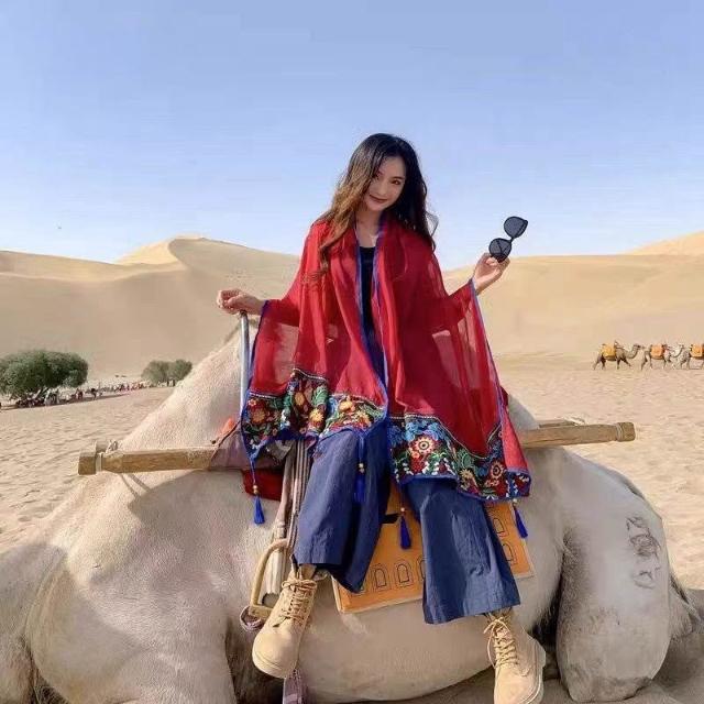 薄款夏季民族風旅遊拍照圍巾海南三亞大西北沙漠披肩青海穿搭絲巾