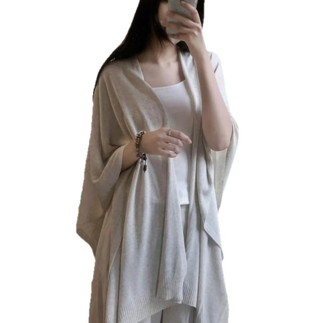 天絲亞麻披肩鬥篷上衣開衫女外搭披風寬松針織衫外套