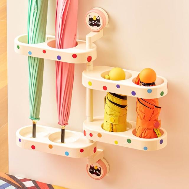 👍品質優選 吸盤雨傘置物架多巴胺家用墻上免打孔可旋轉雨傘放傘神器收納架