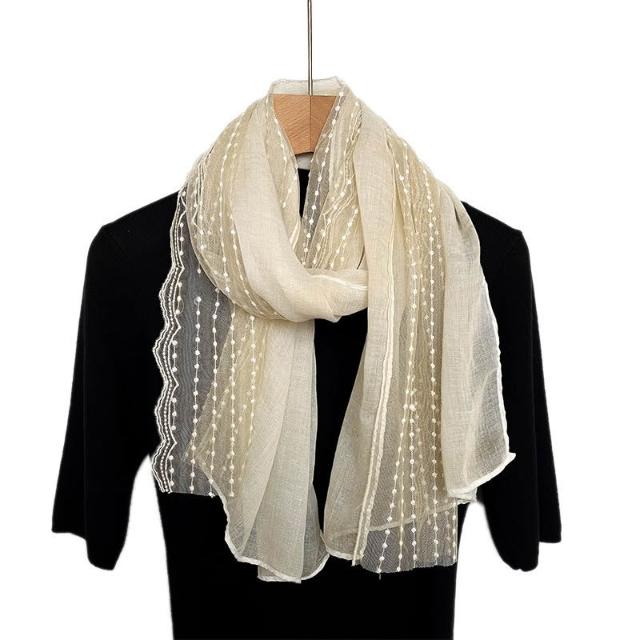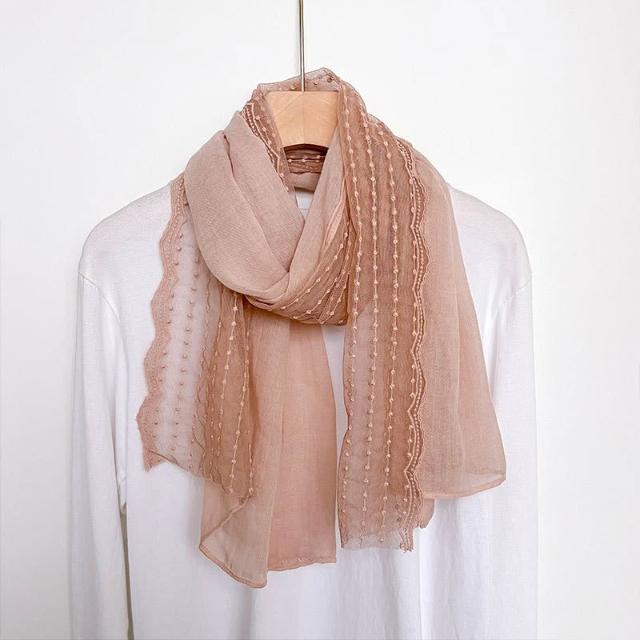 文藝名媛蕾絲棉麻圍巾女180x85 夏季空調房護頸披肩旅遊紗巾