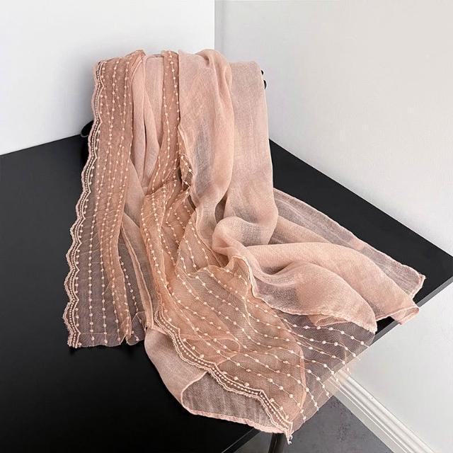 文藝名媛蕾絲棉麻圍巾女180x85 夏季空調房護頸披肩旅遊紗巾