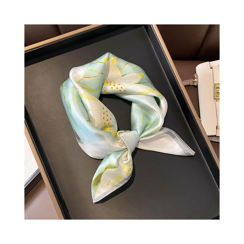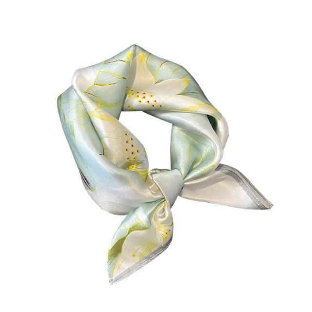 春夏季輕薄款中國風荷花53桑蠶絲真絲絲巾女小方巾綁包裝飾送媽媽